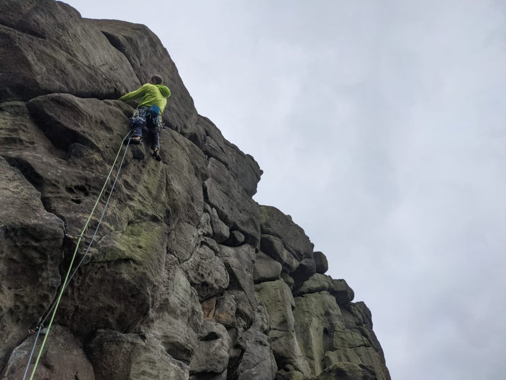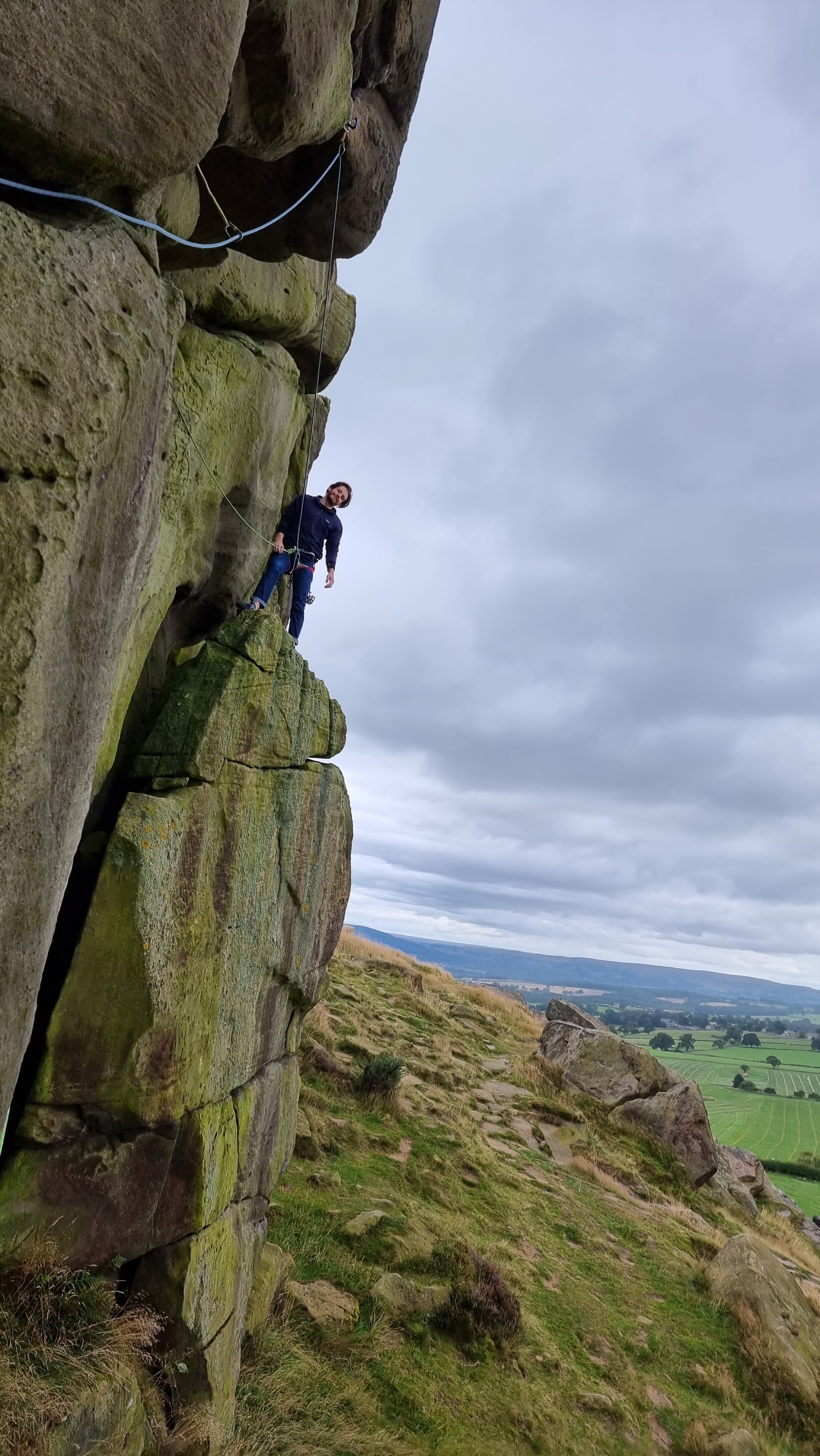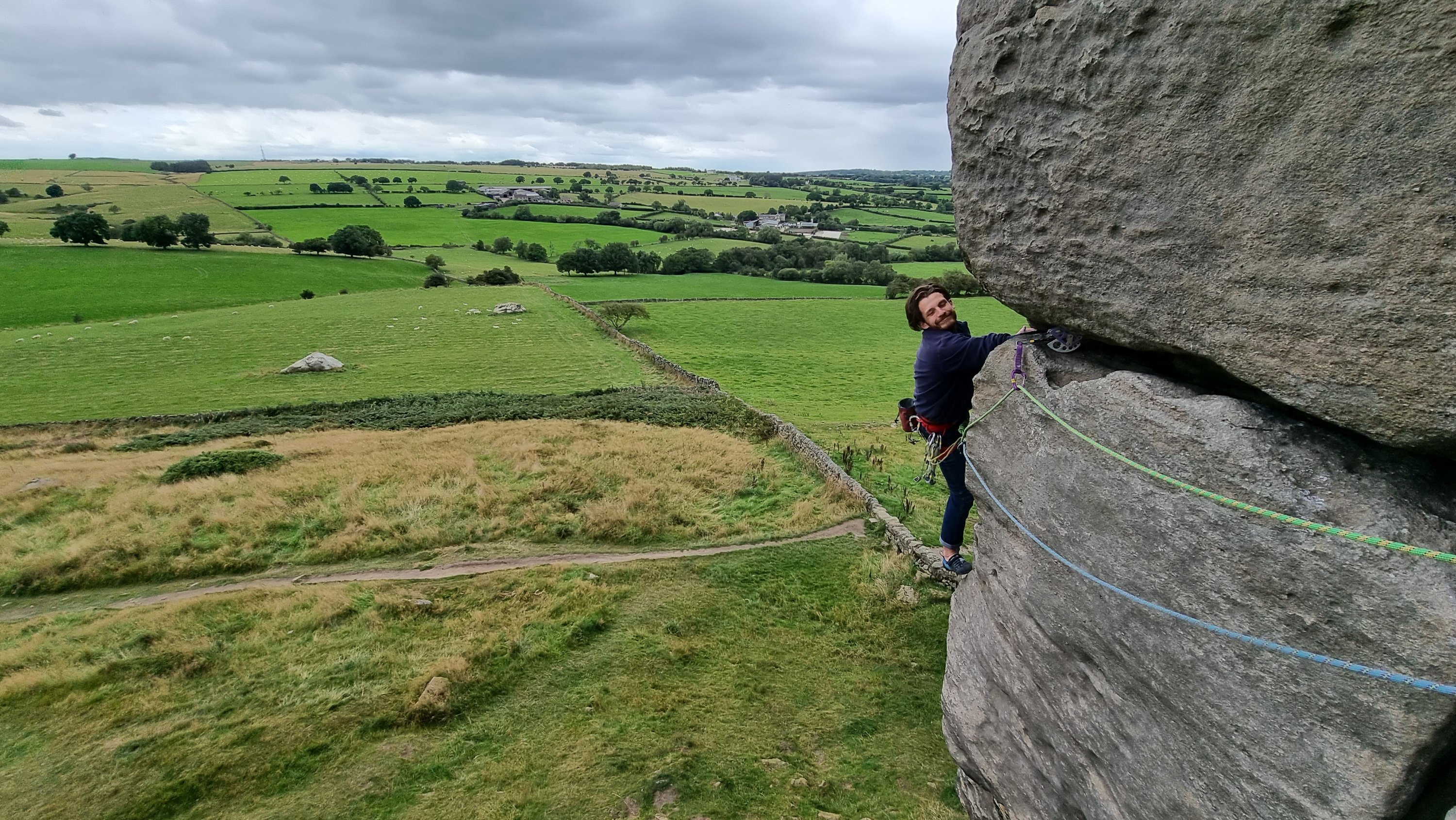 2021 was never going to be a year for birthday cake on a portaledge, and the weather at home didn’t really encourage a mountain hit, so it was a good opportunity to tackle another of my remaining Hard Rock gaps: the North West Girdle of Almscliff. Happily, Jake could fit me in for an after-work rendezvous at his local crag.