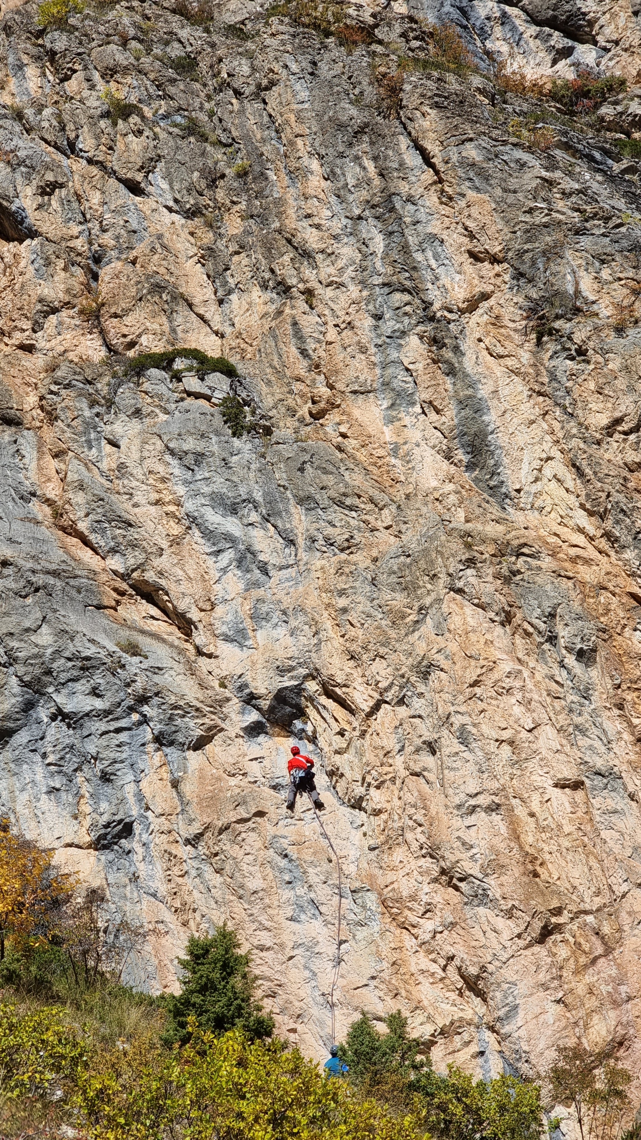 Paroi des Lys is like a big brother to La Ponteil, looming above it and about twice the height. It’s remarkable that such a sizeable crag (routes up to 8 pitches / 250m) can be accessed so easily, just 10mins of gravel hairpins beyond the Ponteil parking area