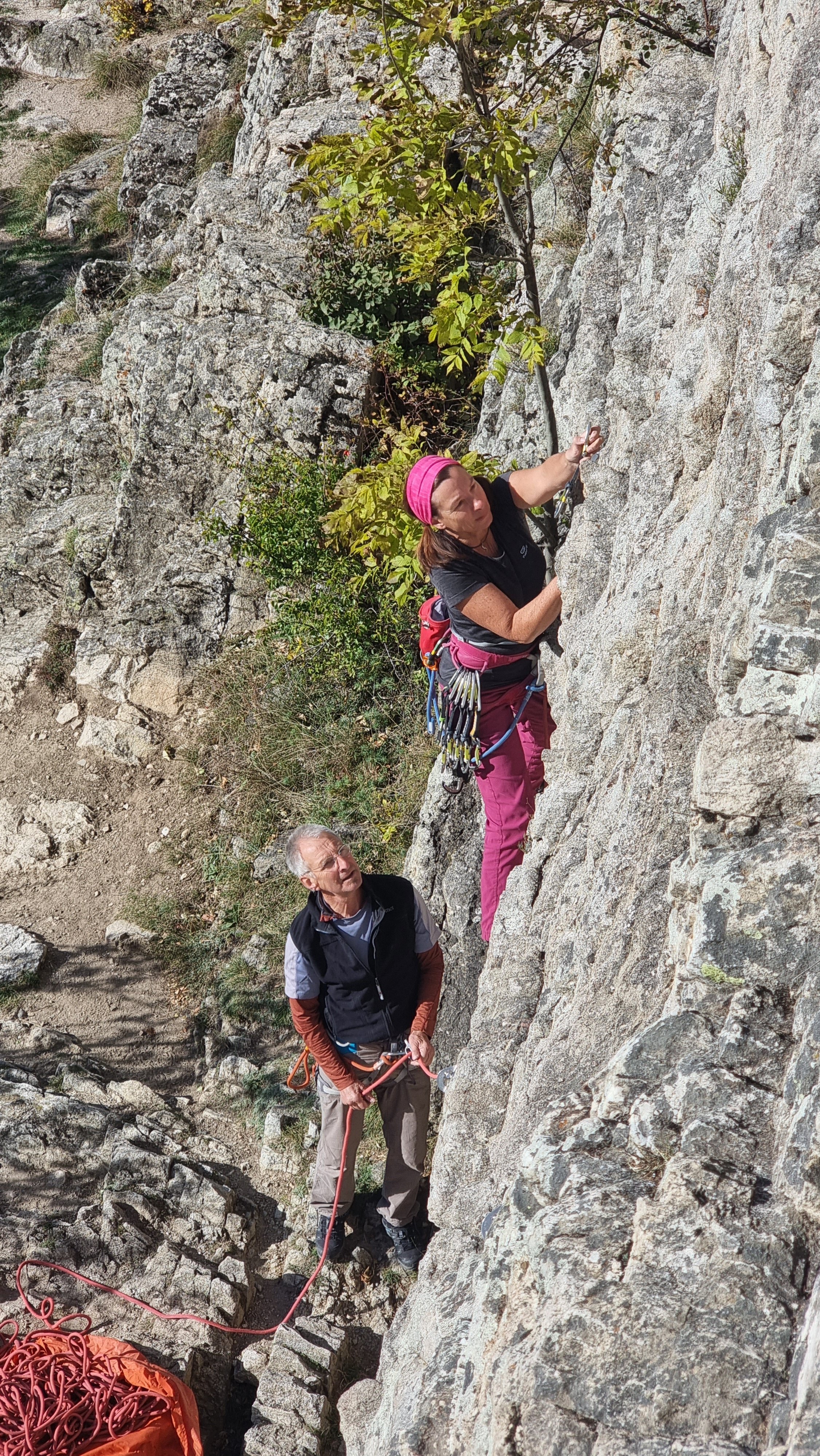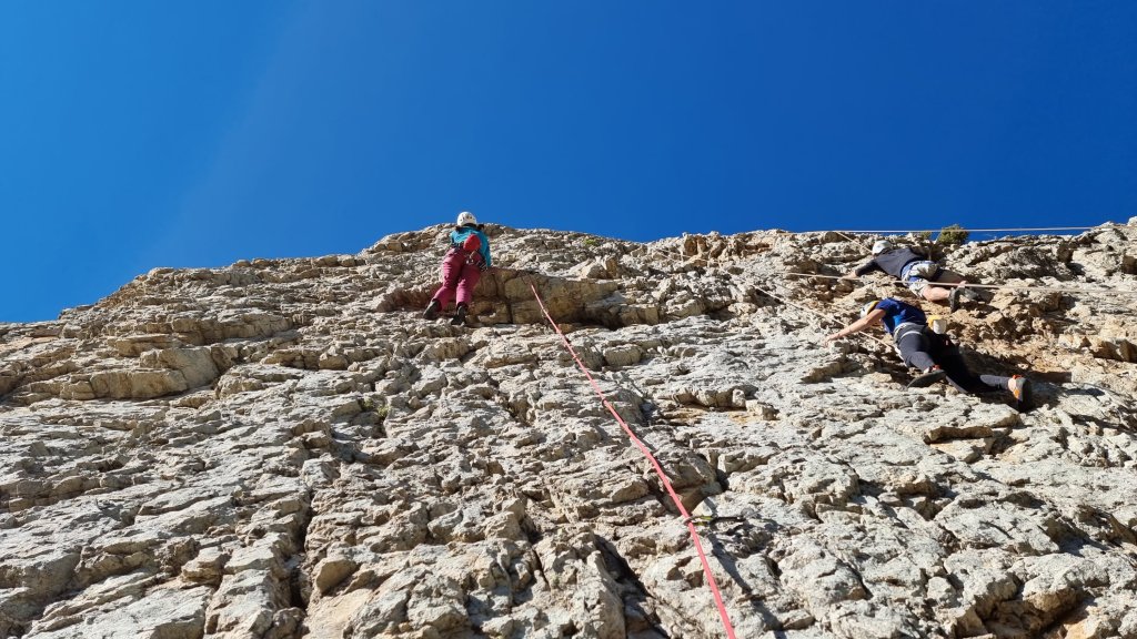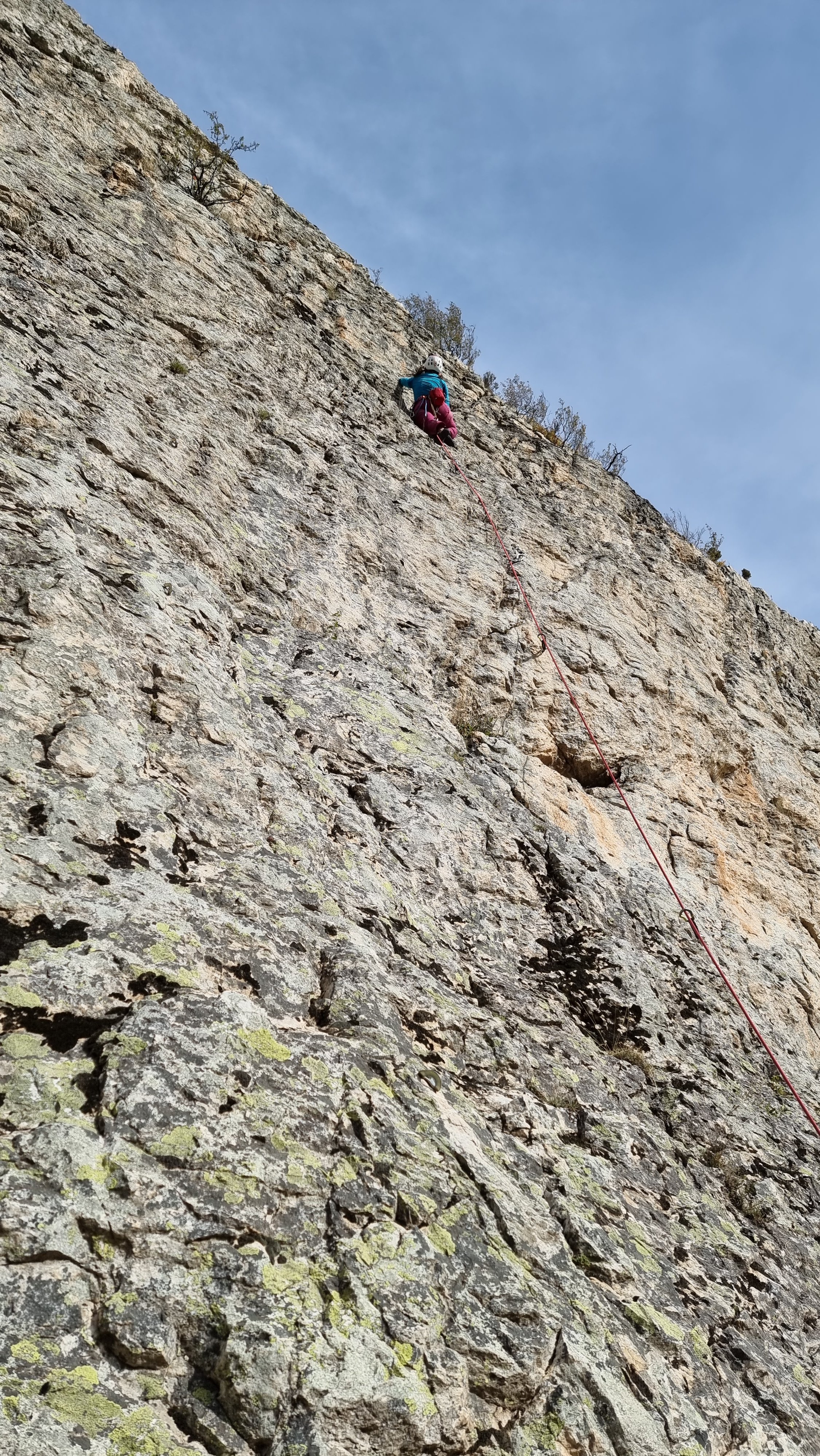 A busy Sunday on the sunny East Face of Rocher Baron – Families and picnics Helen leading La Siesta au SoleilReviens LeonWho is that bronzed Adonis? Mike cruising Eau, 6a+Me on Au Jour du Grande Voyage, 6c, on the sunny, steep south faceFollowing the sun, and avoiding the crowds, around onto the west face of Rocher Baron – new steel cables on the scrambling section have replaced the rag-tag fraying ropes since last year. The west face – a good mix of 6s high above the main valley Helen setting up for the crux sequence of Question d’Adherence – no question of her not sticking for a fine 6c send! Helen cruising to the chains on Question d’Adherence, 6cCasse de Prelles – Les Ressauts, upper tier of the main crag (with the mid-week locals, avoiding the school group on the sector below) Mike topping out on La Pluie Me on Energie Positive – fun and steady for 6b, with only one crimpy section End of the road (trip) for Mike as he heads home – Celebrating a great week with the excellent CitroFacile, 6.5% at Le BrewPub in Argentiere