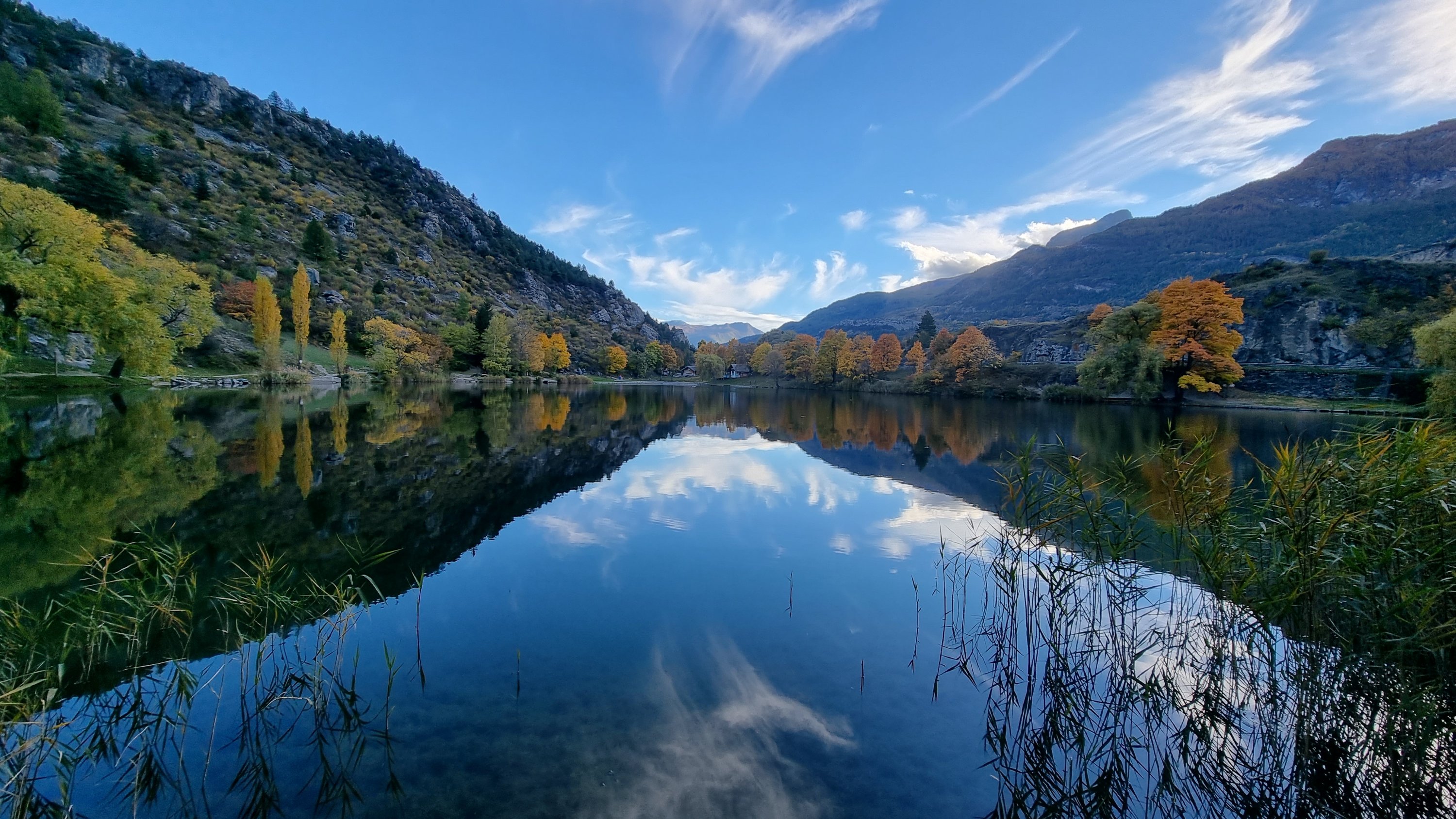Dropping down steeply into the village (via an MTB track – you’d have to be bonkers!) you arrive at the lake. You don’t get the full impression of what a lovely spot it is when you thunder by on the main road (past all the posters demanding a bypass).