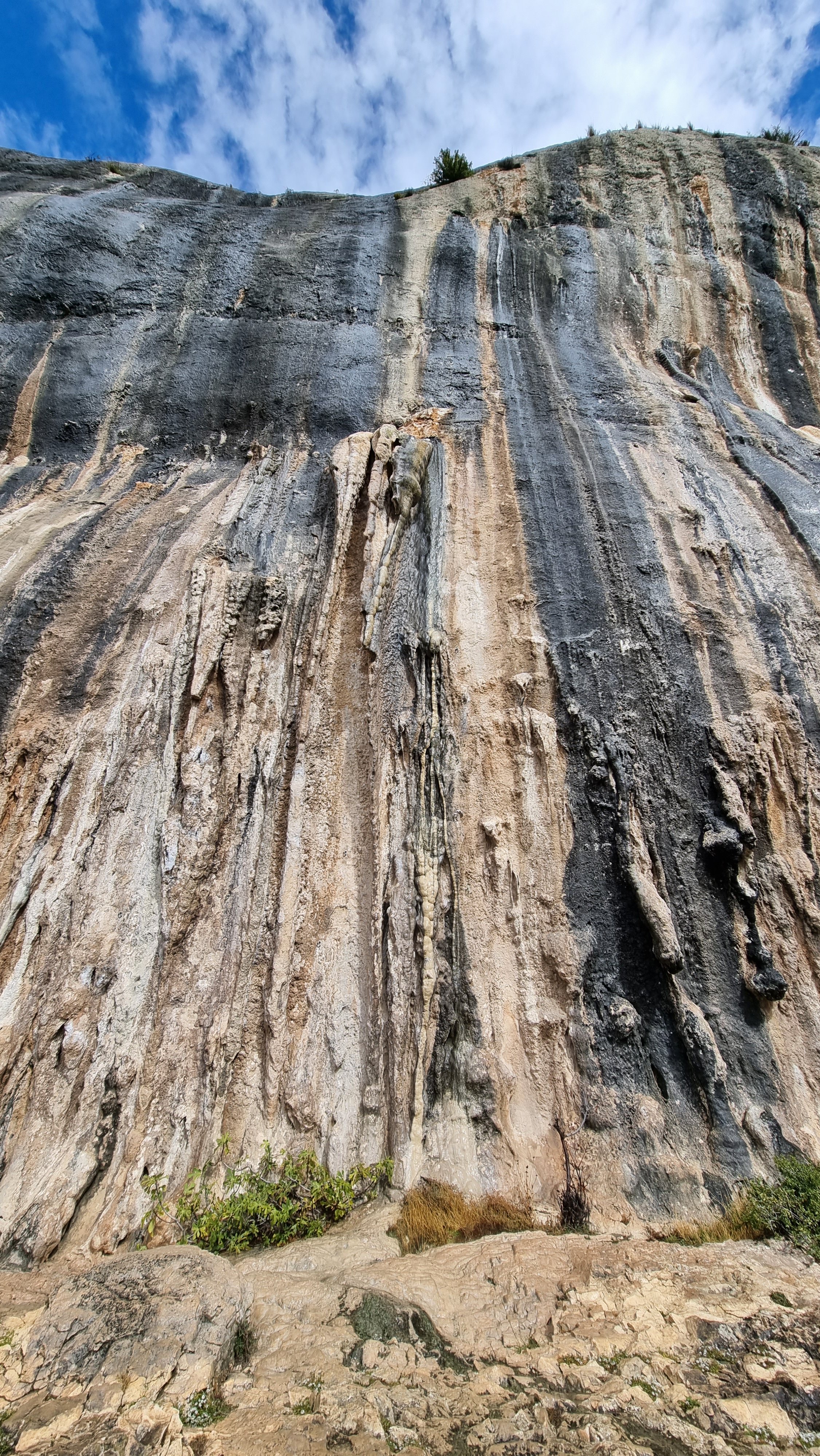 … Probably not surprising given the amount of water that had fallen overnight, and the fundamental tufa formation process! It was the same story working leftwards past the other major tufa sectors including Liaison and Jose, but by the time we reached Rouge Gorge route-sized gaps between the wet streaks were starting to emerge.