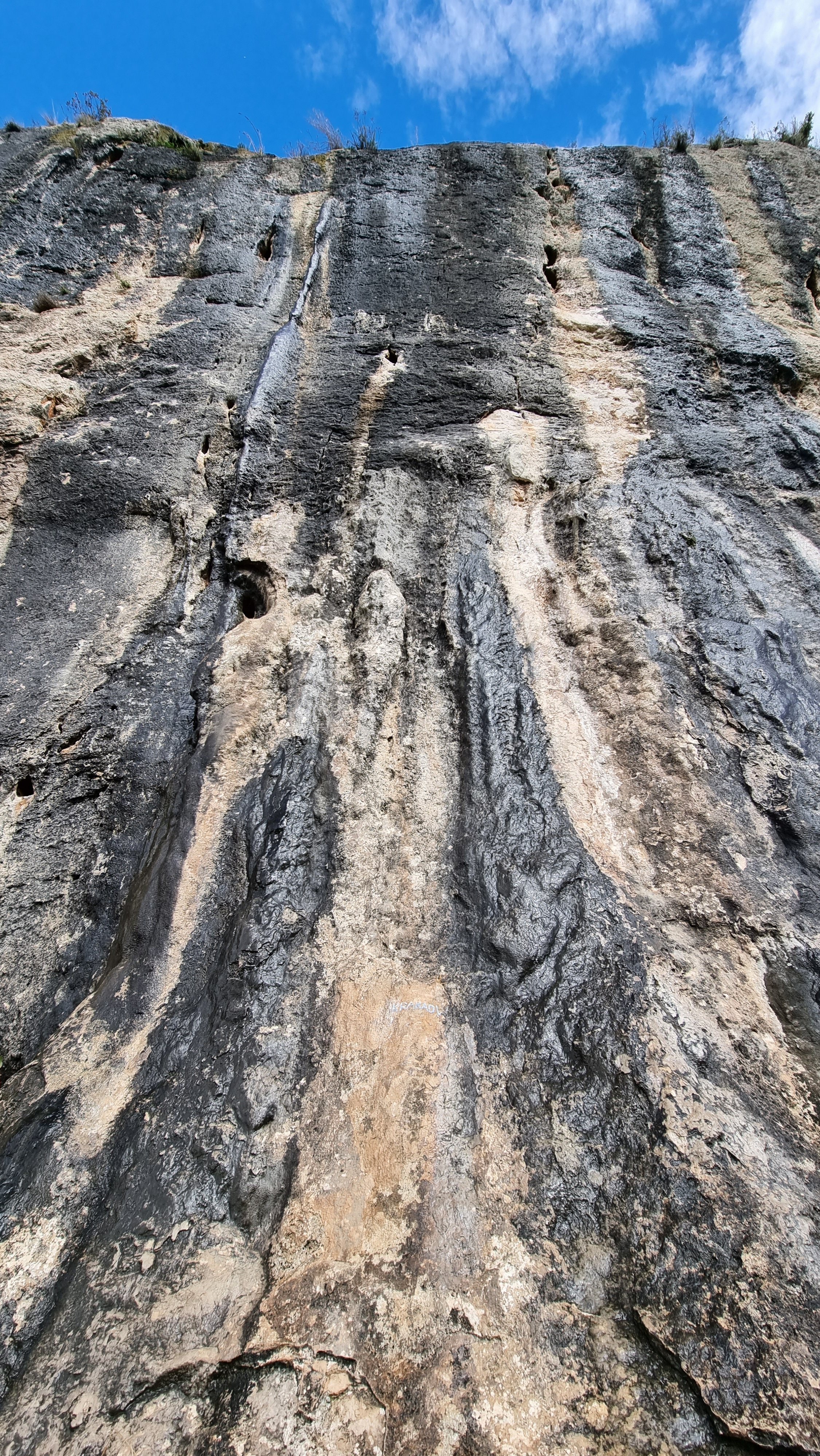 It’s a fine wall, with something for everyone in terms of grades – from 3s to 7s. The only drawback is that these are stacked on top of each other, with most of the routes starting up easy territory, steepening up, and then kicking in big-time at the top up to 50m or so. Interim loweroffs allow for a bailout and tick at various points, but it’s all a bit confusing, not helped by the quirky depiction in the guide. Surprisingly unpolished, given the convenience.