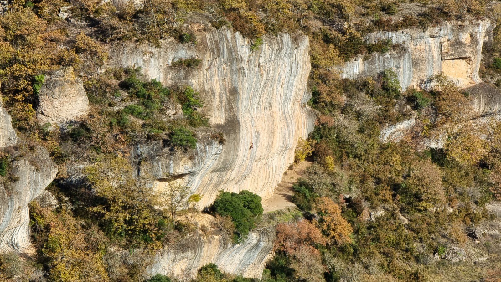 Cantobre is a long-established classic hard crag, with about 50 routes on an immaculate wave of orange, pocketed limestone. South facing and in the beautiful Gorges de la Dourbie, it takes its name from the picture-postcard fortified village set atop the adjacent mushroom of rock.