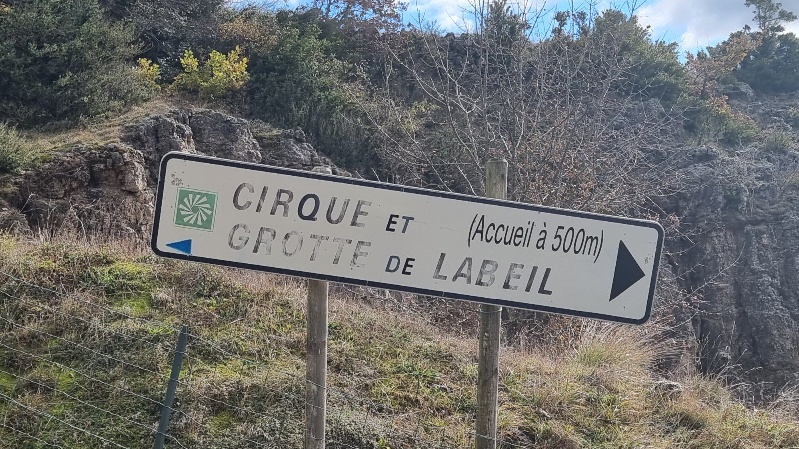 The Cirque and its associated Grotte are something of a local tourist attraction, and while only a few km from the A75 are an idyllic peaceful haven. The Cirque itself contains a lot of rock in its wide sweep, but has only been developed for climbing very recently. There’s no topo but you’ll find approach details on ClimbingAway and a partial list of routes and grades on TheCrag. Basically, park at the parking area: