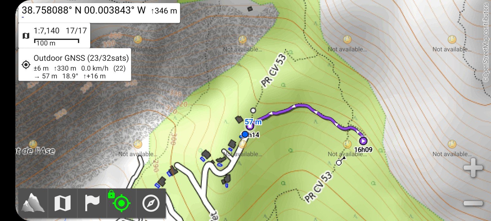 La Solana is a newish crag on the hillside just west of Lliber and immediately above the village of Xalo (Xs seem to have won out over Js in the battle for Alicante place-names). The guidebook promises a flat 7 mins walk (“follow the path from the parking direct to the crag“) but neglects to mention that there are TWO paths! It turns out that you don’t follow the obvious way-marked path with the painted post marker, but actually choose the hidden smaller rightmost path, as we discovered after much bushwhacking! Here’s a trail so you can avoid the same fate!