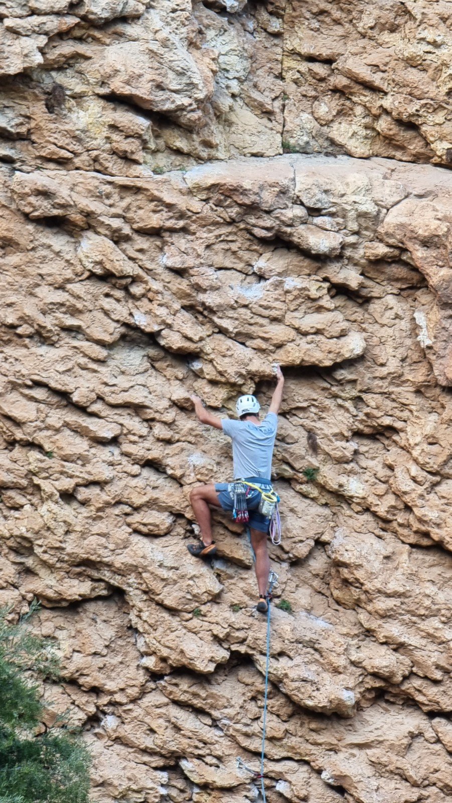 Buen Rolitto, 7a, takes a line up some very steep orange blobs but then has a stopper move within sight of the chains.