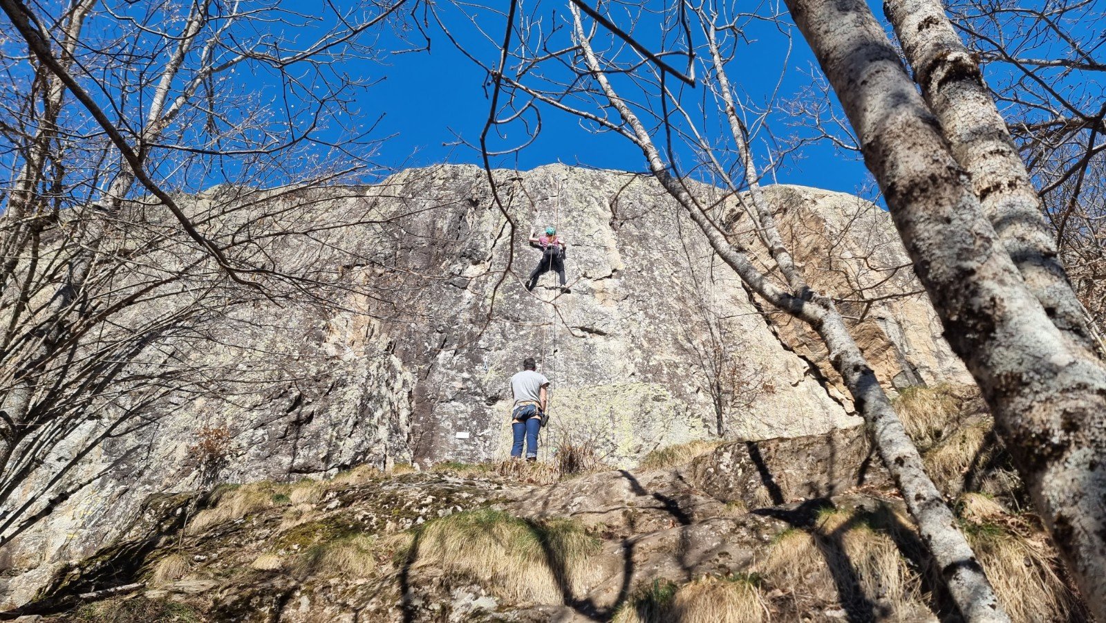 Wandering up the other side, you’re soon at Sector Initiation – a dozen short (~10m) routes from IV+ to 6c/7a, where we bumped into a young Basque couple.