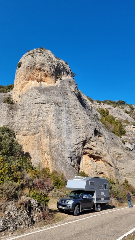 Onwards to the village and we pulled into the van parking area at the Albergue / Refugio. Not a bad spot, sandwiched between the crags (and vultures)…