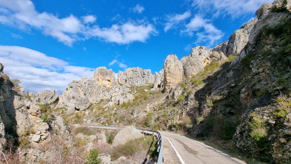 The 400 or so routes are scattered across numerous walls, towers and pinnacles on both sides of the road, with sectors facing all directions to accommodate your preference for sun or shade, and all in a really compact area little more than a kilometer square, starting just 500m from the Albergue. You could easily base yourself there without a car (they have bunkhouse type accommodation, a bar and restaurant too) and walk to any of the crags in at most 20mins, but there are also handy parking spots at various points along the road making numerous sectors practically roadside.