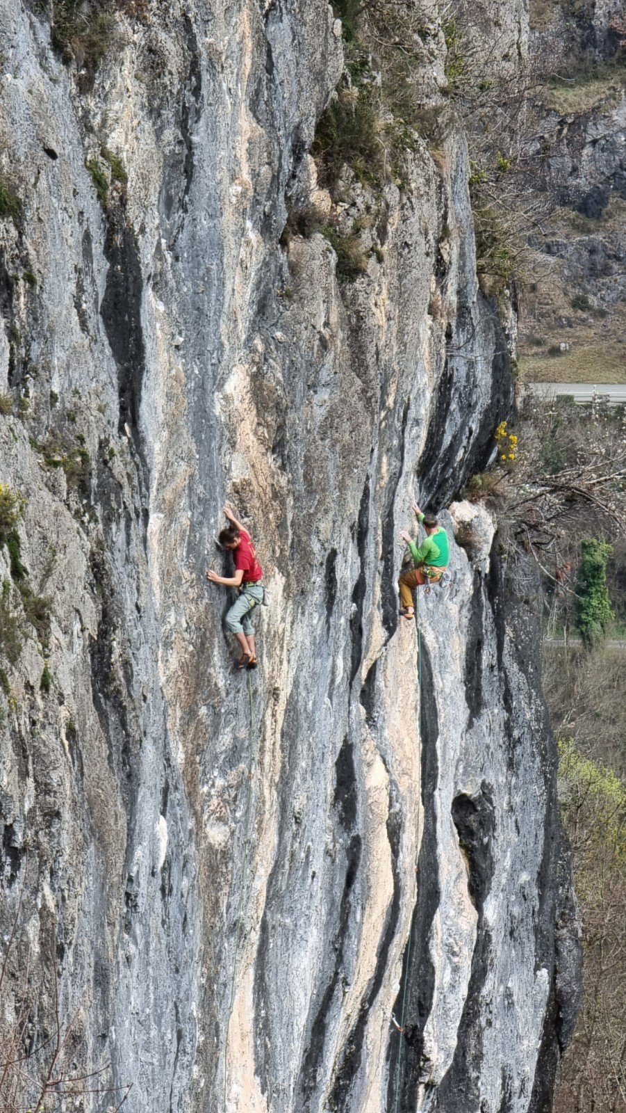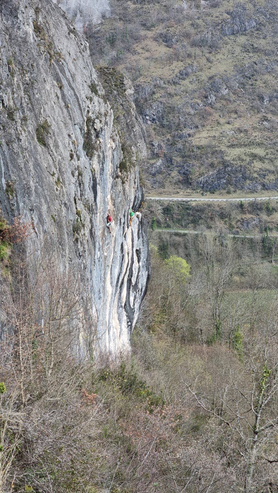 Saturday brought the promised perkiness to the weather and we set off to explore Calamès, one of the premier crags in the Ariege and a full-on south-facing sun trap. We’d only had one previous visit to the area in late October 2014. We’d stopped by on the off chance of breaking the journey with a bit of climbing on the way to Spain, and ended up staying for almost a fortnight of glorious, unseasonal weather. It was so hot that we never ventured onto Calamès for fear of being fried! Fast-forward almost 8 years and we were in the mood for any sun we could get!