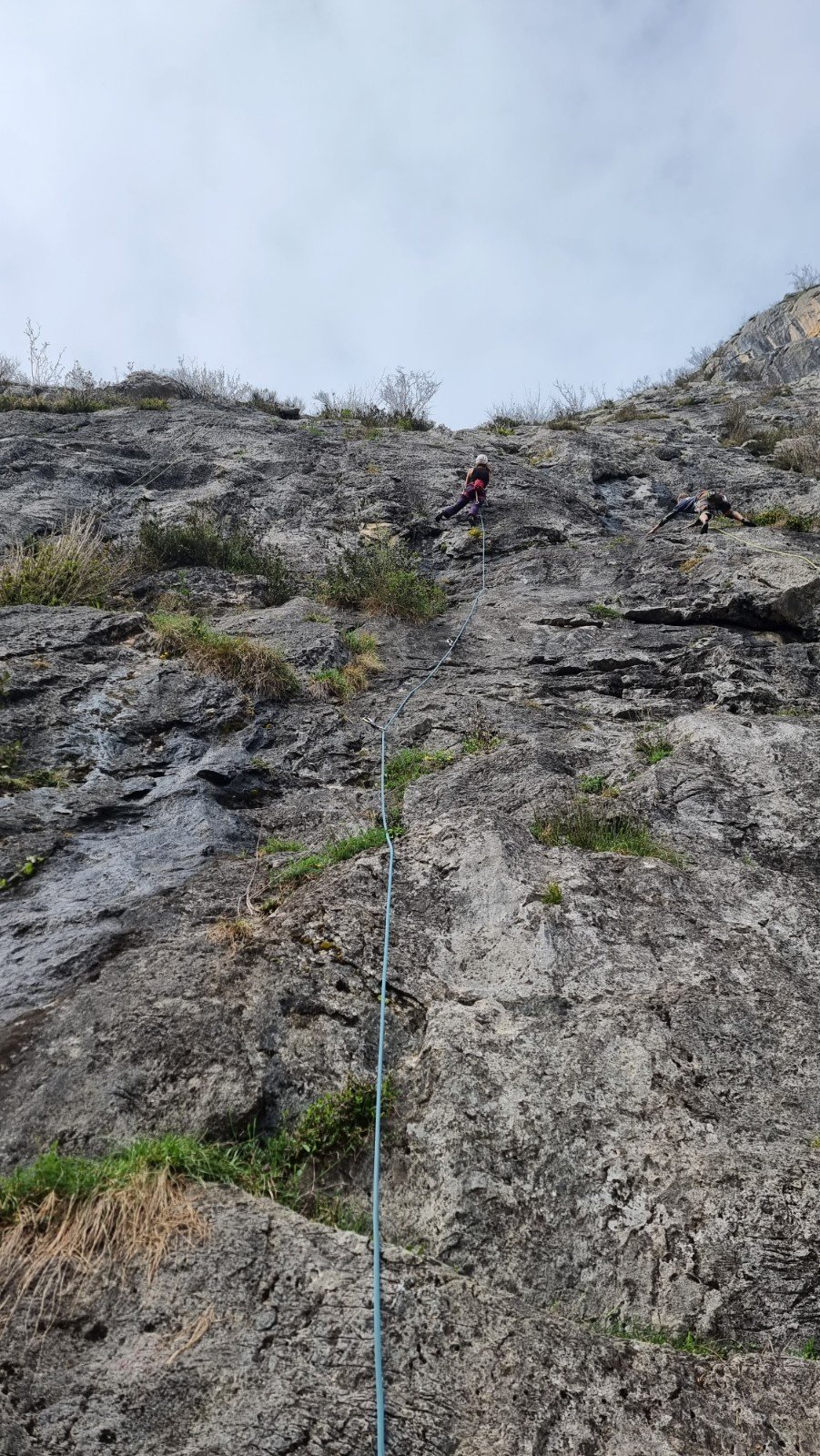 To be honest, we were somewhat underwhelmed – the routes max out at 14m and the first half of this is a blocky scramble, leaving the climbing crammed into a few awkward meters.