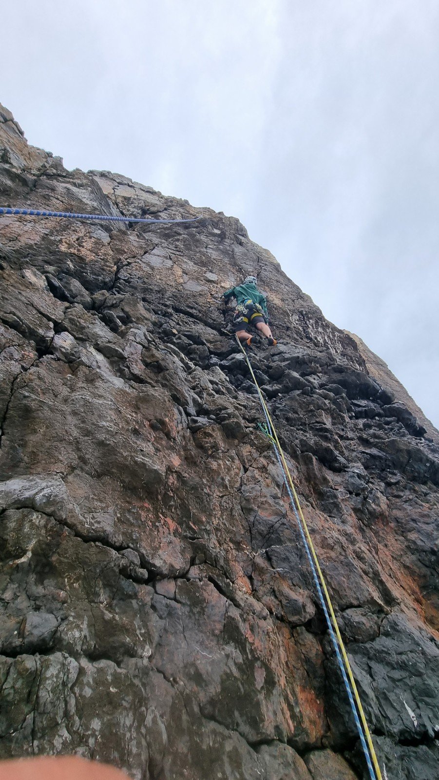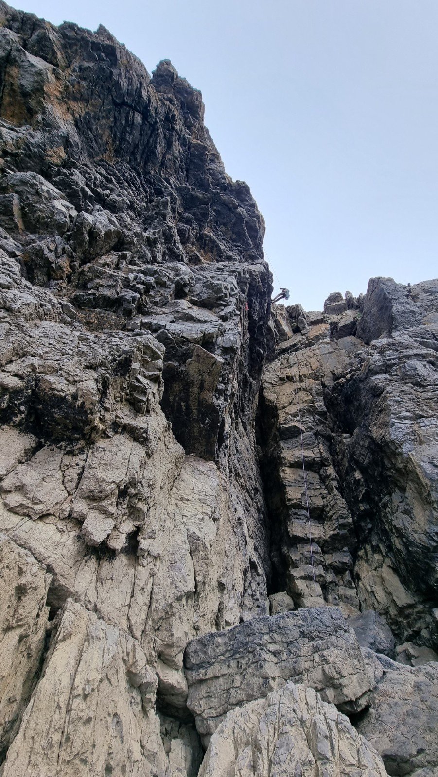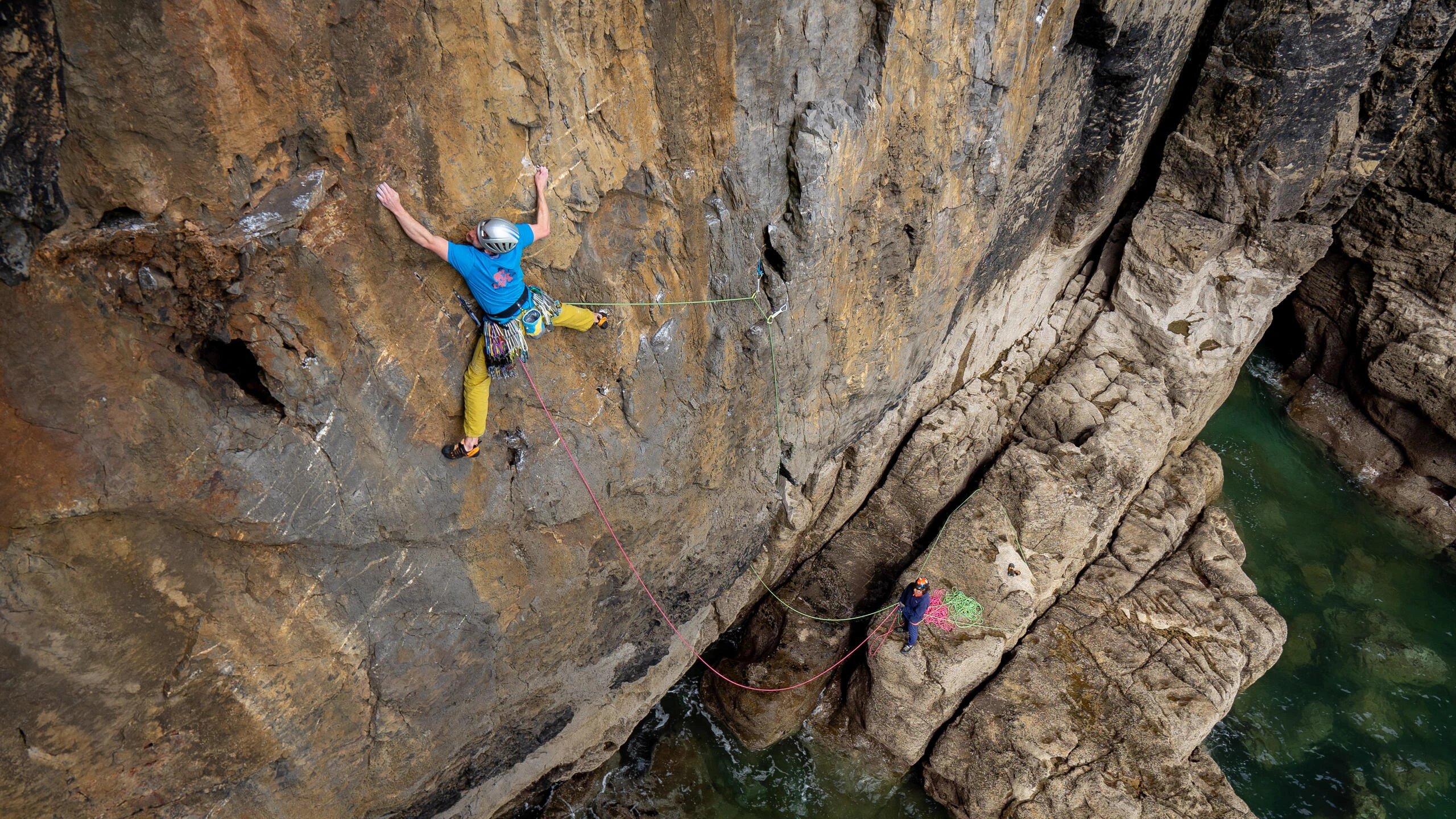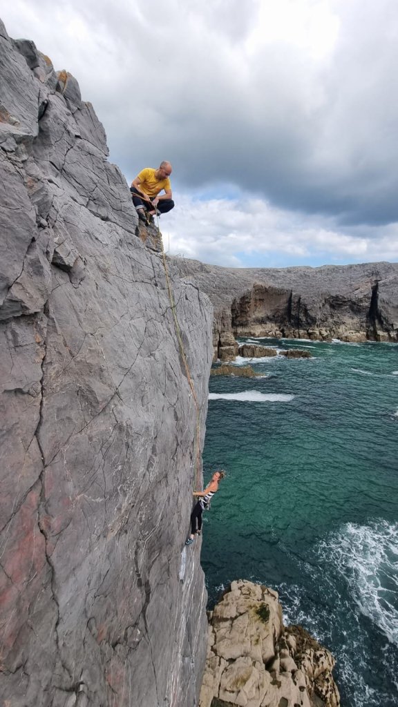 Here’s Jake on the crux pitch – you only need to see where the ab rope touches down in the sea to gauge the angle…