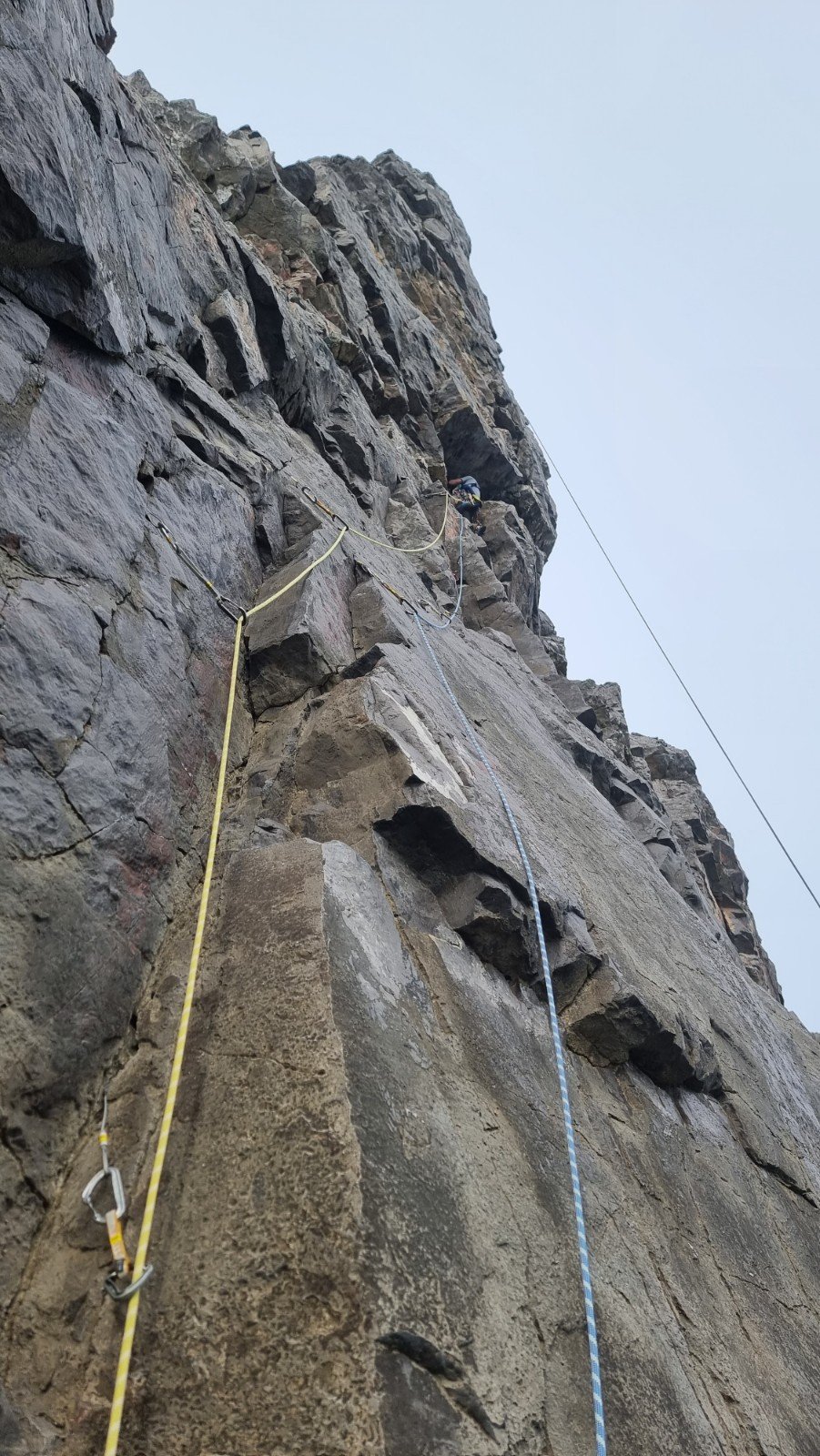 Back to Mother Carey’s the next day (limited options with the Range closed) and we bumped into Will and Katie (doing Fireball XL5, E6 6b!). Paul led the stupendous The Straight Gate, E2 5b