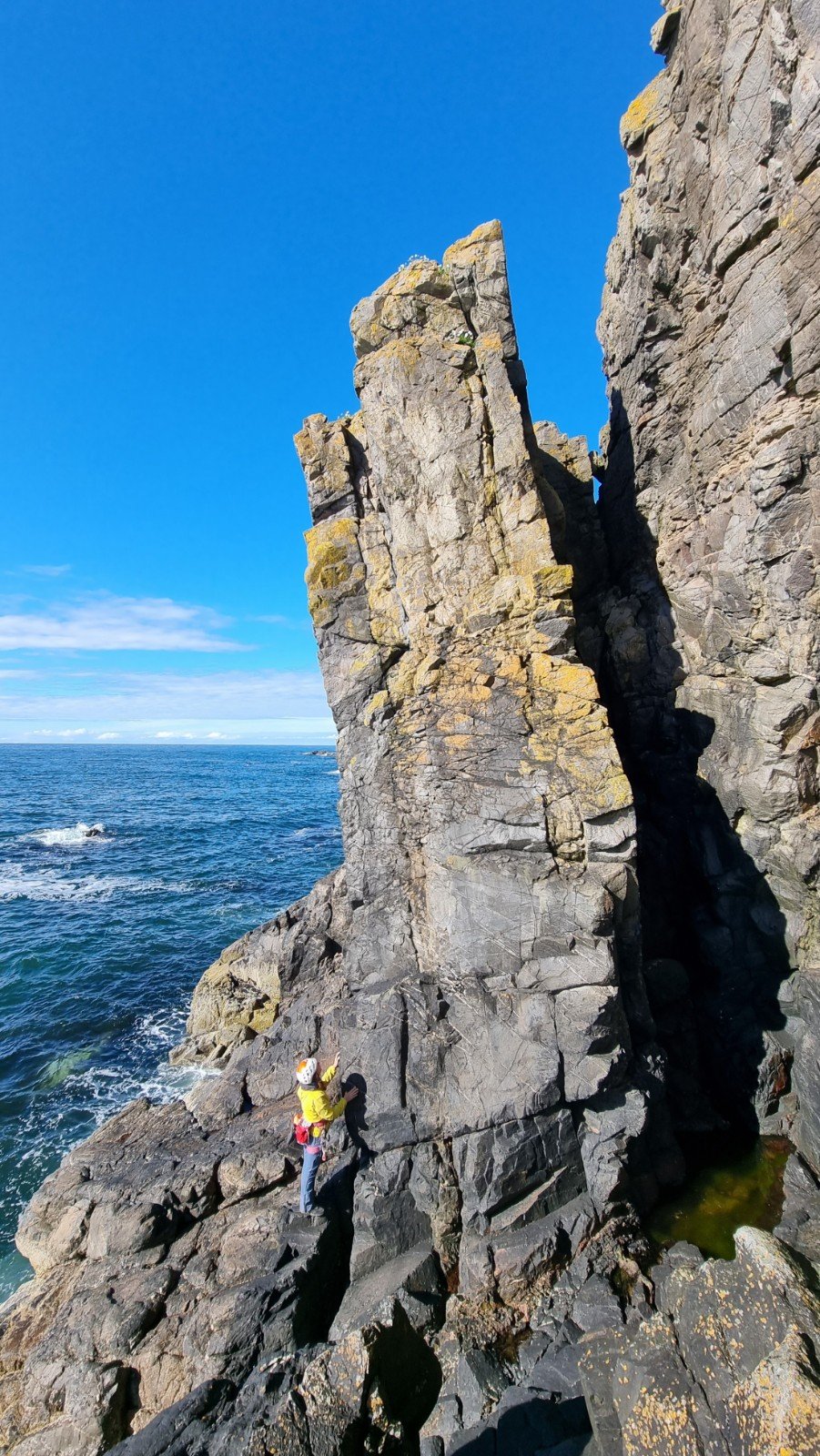 There’s an absolute maelstrom of bombarding birdlife (though happily the crag itself is free of nests or guano) and we also had a couple of seals patrolling back and forth. Magical spot, and definitely a crag to come back to on a sunnier day.