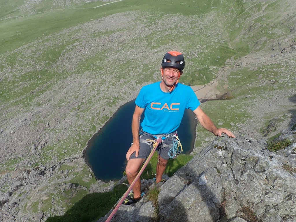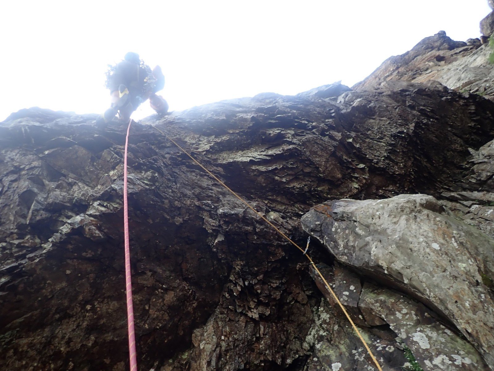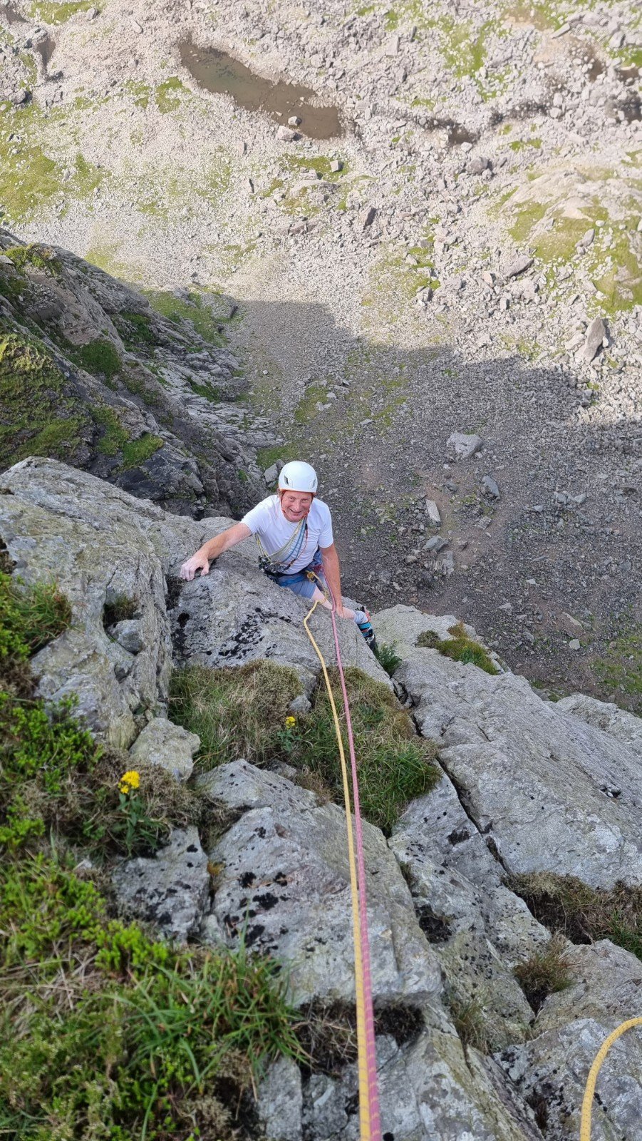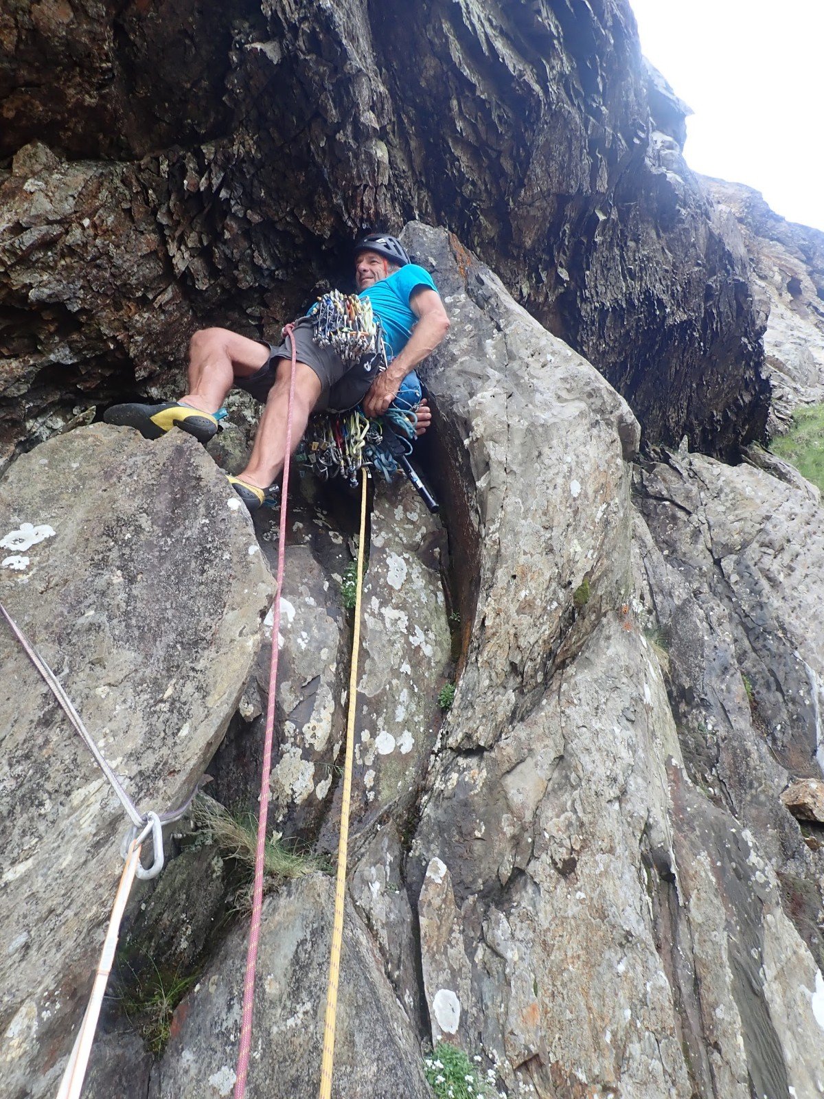 The moves left from the grassy ledge are quite thin and it’s not entirely obvious from the description what level you traverse at. Jim went up, along and down (but didn’t recommend it) so I went slightly down from the ledge then across. Either way there isn’t a lot of gear and it’s a good spot to practise the art of not-falling-off!