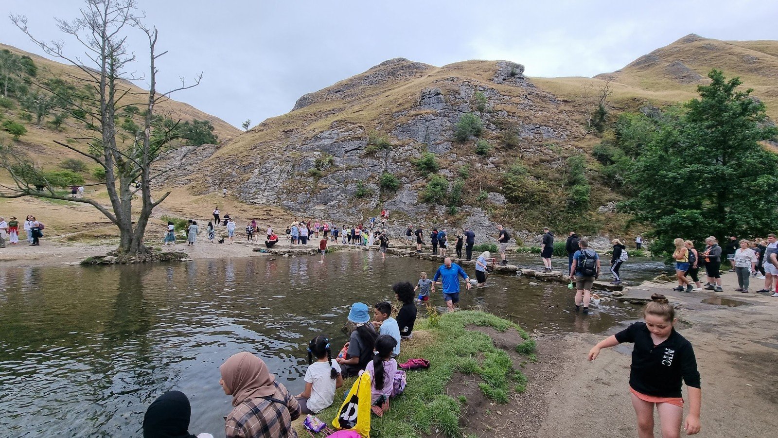 A bit of a drizzly day, with the prospect of dry rock out east, prompted Helen, Jake and me to pay a visit to Dovedale. We were amazed by the thronging hordes mingling around the stepping stones (like a one way system when the traffic lights have failed!)