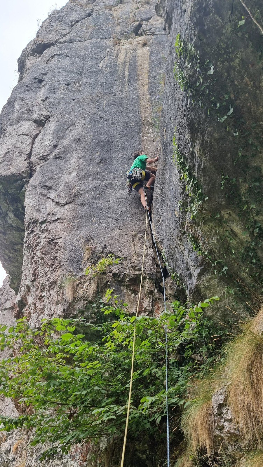 The crack itself is also the wrong side of vertical, but does offer gear aplenty – if (and it’s a big IF) you can hang around long enough to get it in! Happily Jake is – Super pumpy, but pretty safe, and for once Helen was happy enough to watch Jake on a tricky route and got some great pictures.