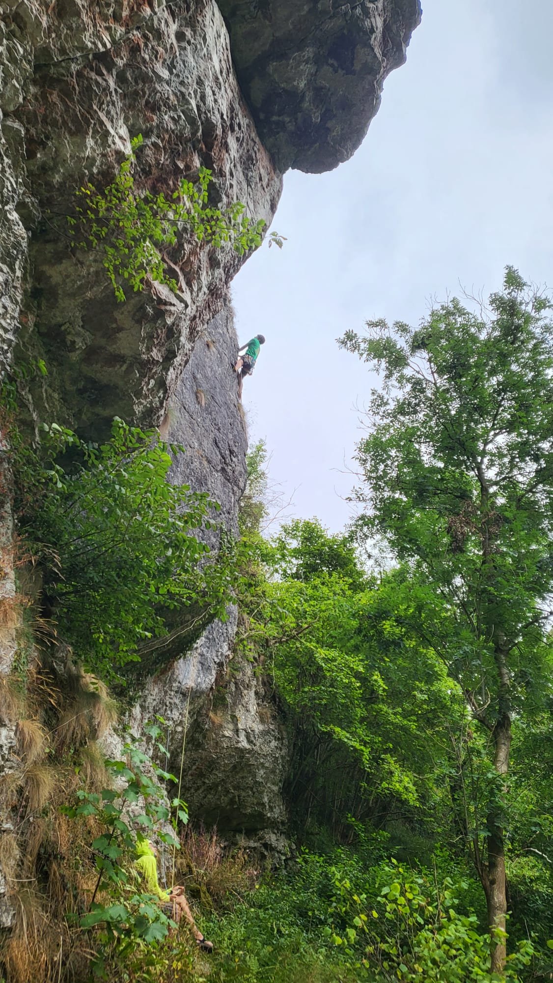 At least it warmed us up nicely for the main event – Tales of the Riverbank, a 3* E5 6a which also features in the Limestone 100. It starts with a fierce blind pull around an overhanging arete into a hidden crack…
