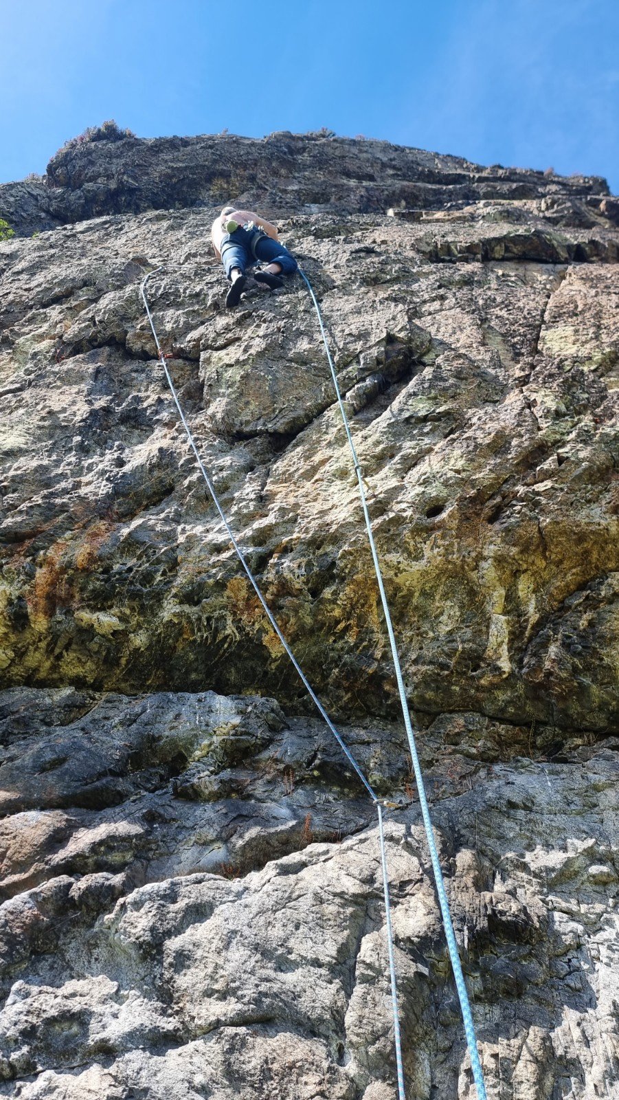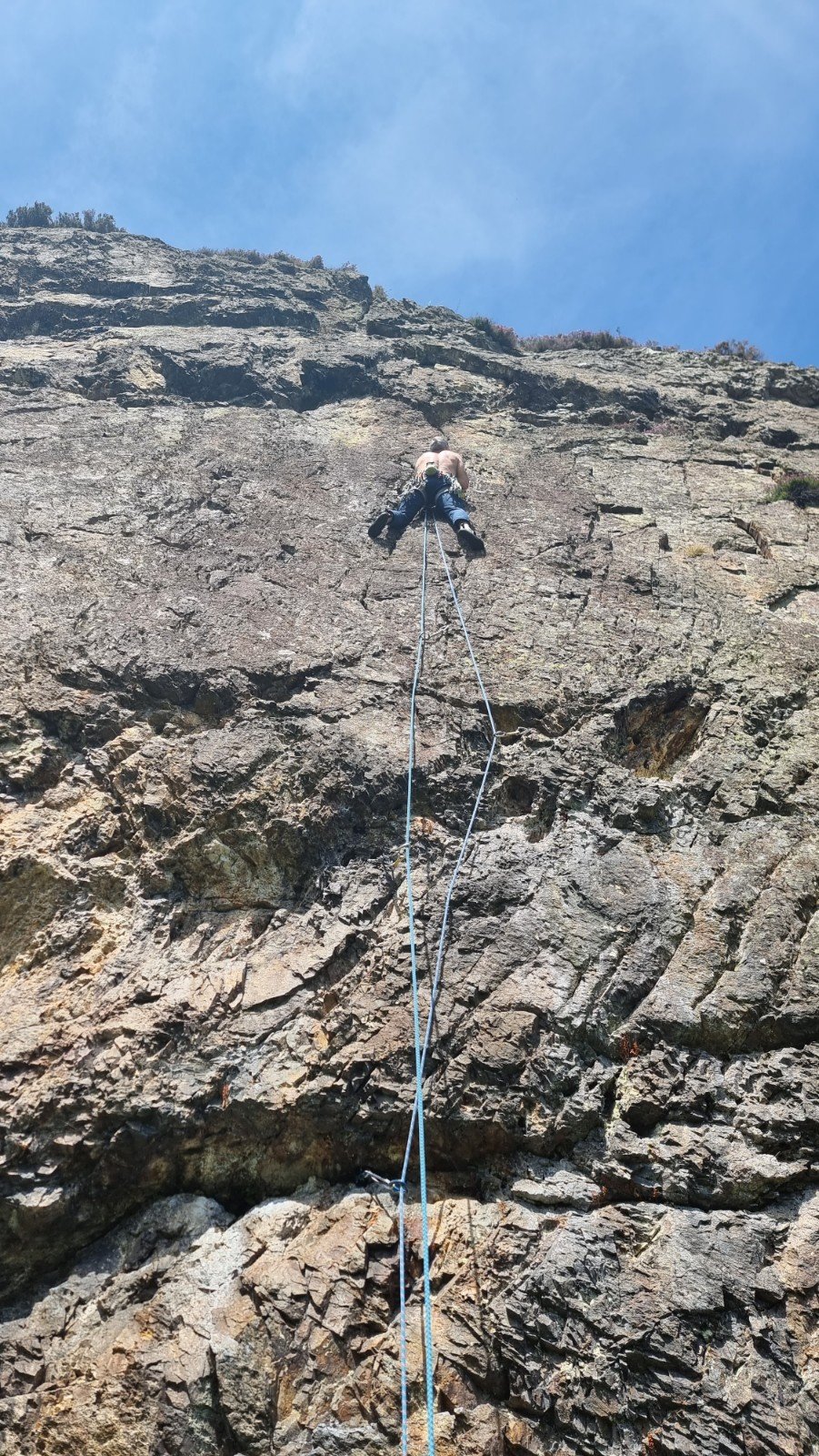 Maybe not the hardest E4, and the pegs are pretty much as good as bolts, but it’s a fab pitch and undeniably steep!