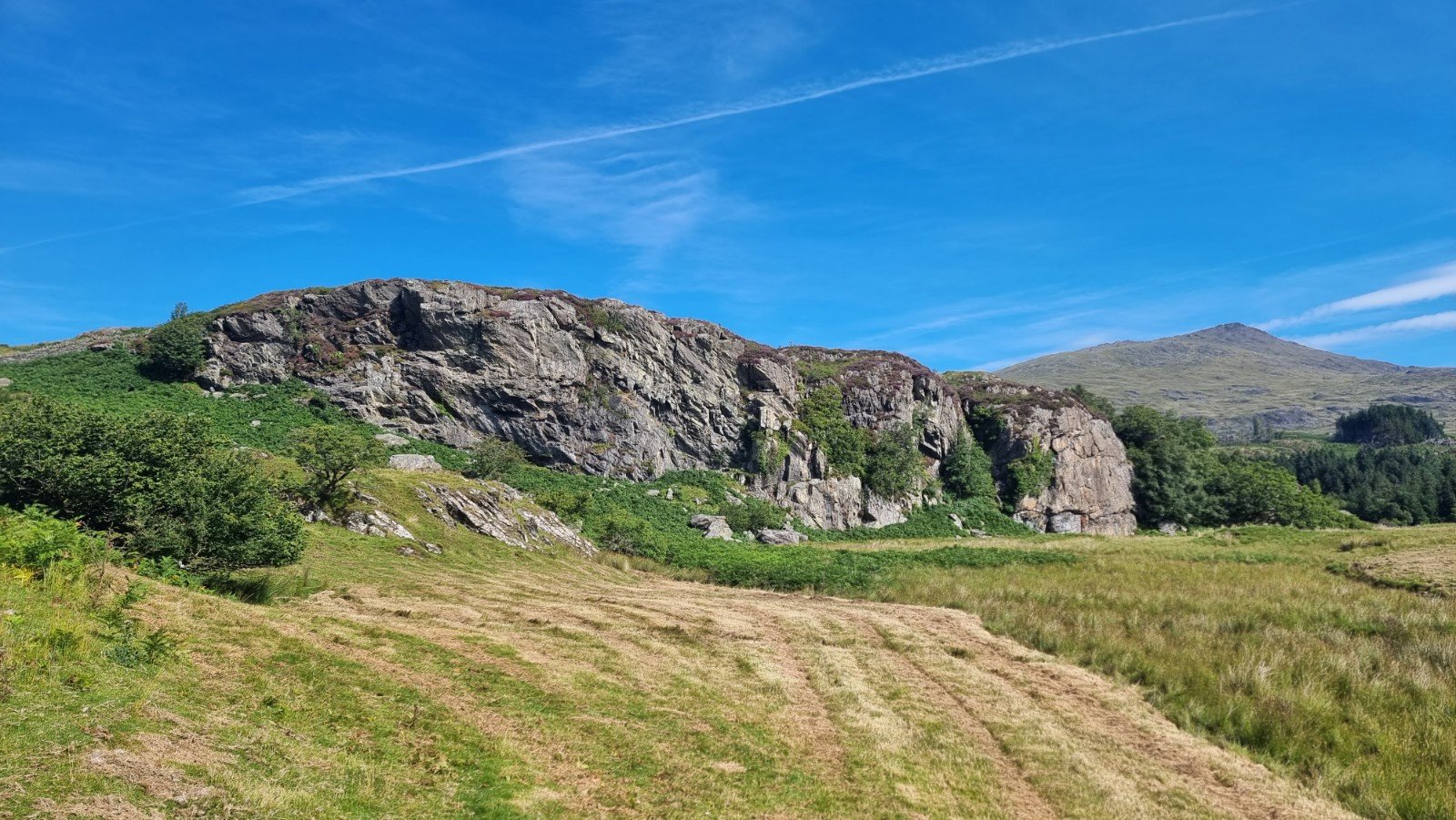 Stan arrived shortly after breakfast and we sped over to Betws-y-Coed and on to Blaenau Dolwyddelan. Twenty minutes easy walk from ample parking, you spot the crag after following a public footpath through a farm yard. It’s a very pretty setting, way off the beaten track.