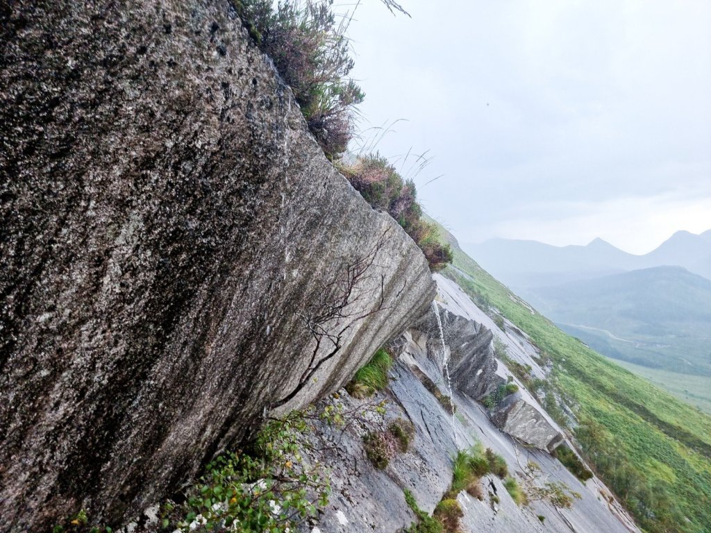 The rain was over in less than an hour, but it would be a while before the slabs were climbable again. No option but to head for home with the weekend’s third Hard Rock tick snatched from our grasp. It was particularly galling to find dry tarmac as soon as the A82 and then clear blue skies and 28C on the road around Loch Lomond – a very localised shower and a reminder that 20% events do happen (apparently about one in five times!) Never mind – we’d thoroughly enjoyed the five pitches we’d done, which capped a great three days, and Swastika will still be there next year!