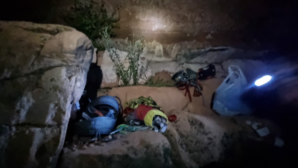 and jugging the 200ft to the start of pitch 3. SuperTopo has this down as the C2 crux, which wasn’t entirely ideal in the dark, but needs must, and it’s actually quite comforting operating in a tiny bubble of torchlight, free from any extraneous distraction. Anyway, there was only one slightly marginal placement, followed by a hook move, and then a romp to the belay.