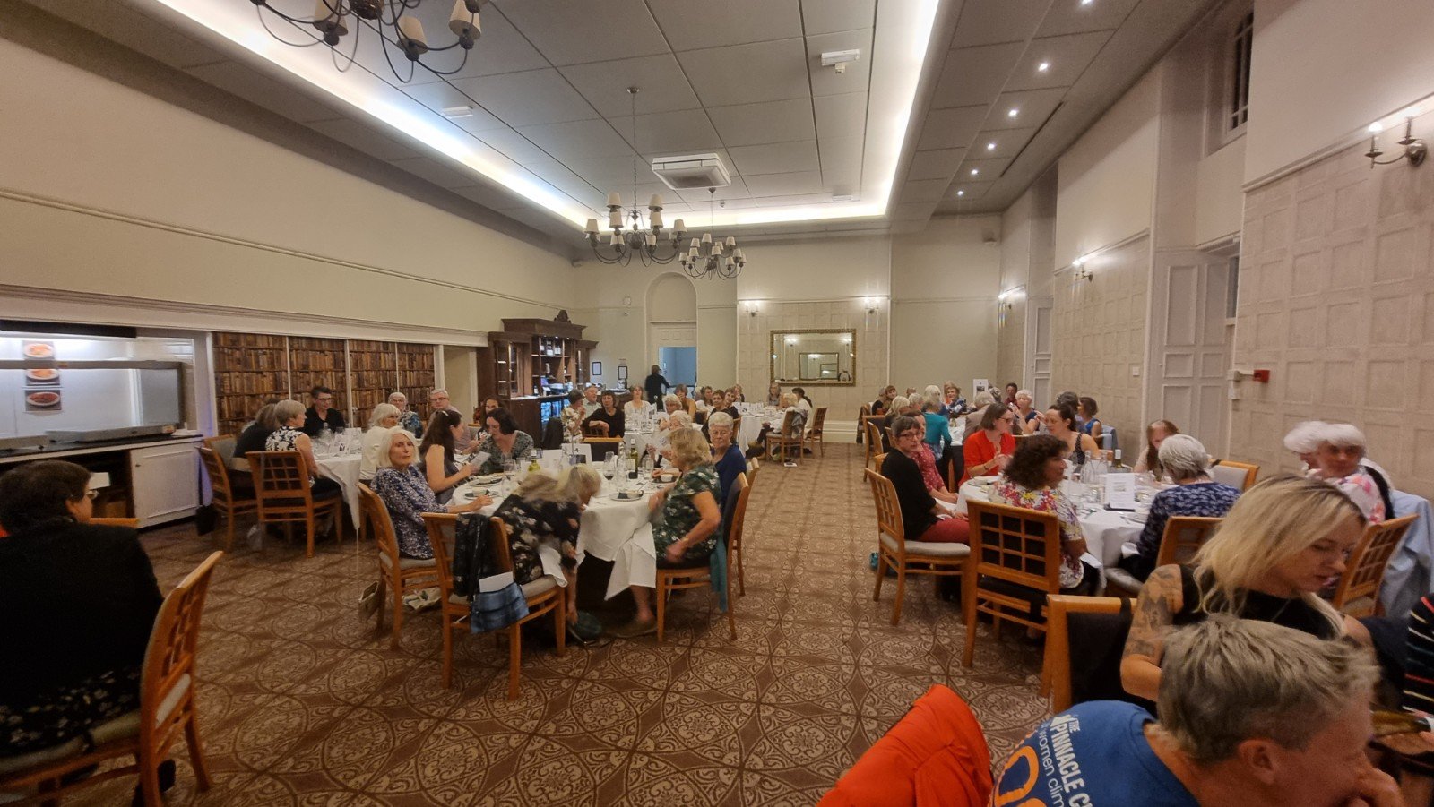 Dinner was a convivial affair and also highlighted another remarkable tradition of the club – each guest receives a menu card with an individually painted picture! There was a display of such menus from over the years, including this one featuring an instantly recognisable picture from our much-missed friend Sally Kier.