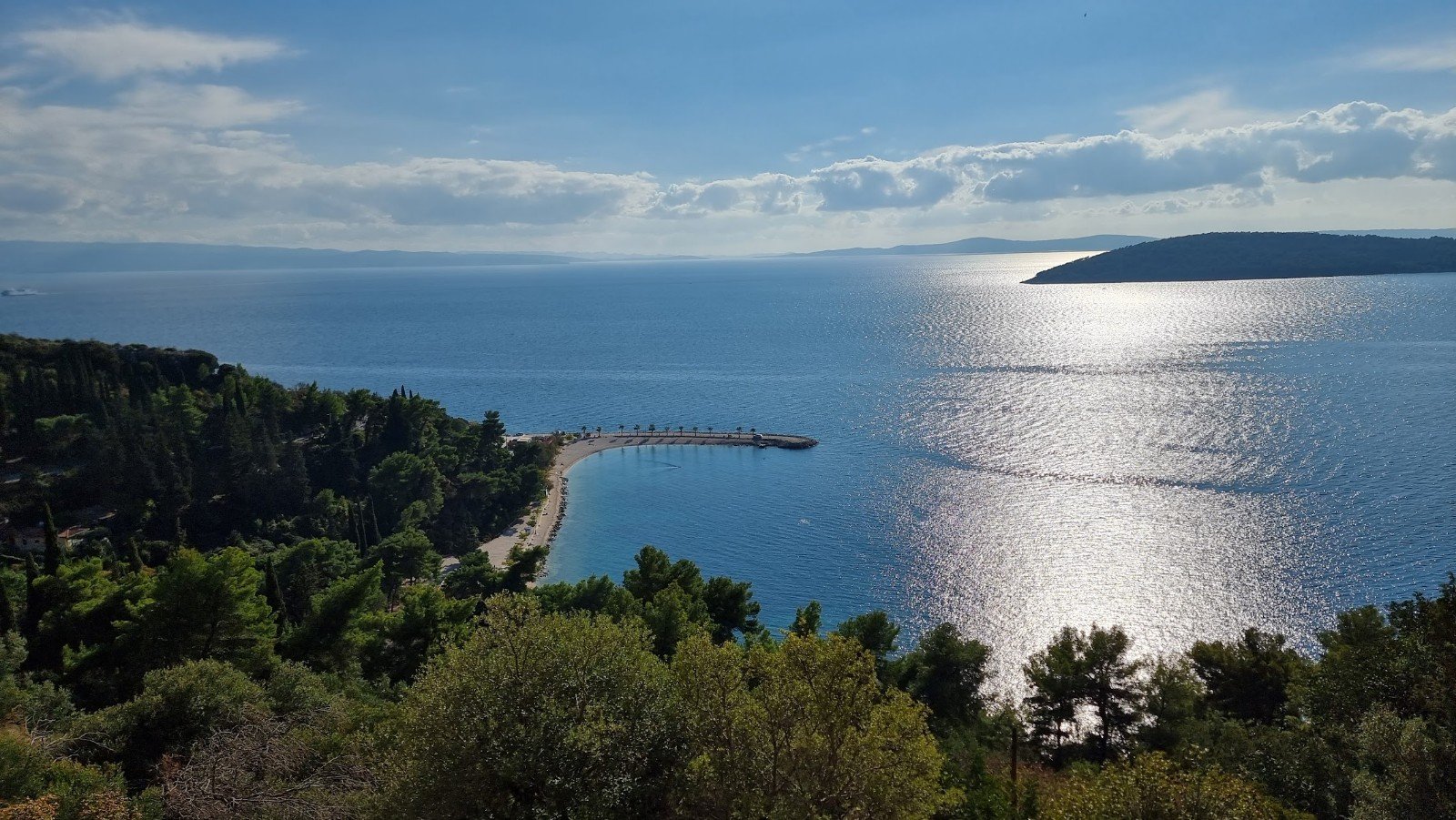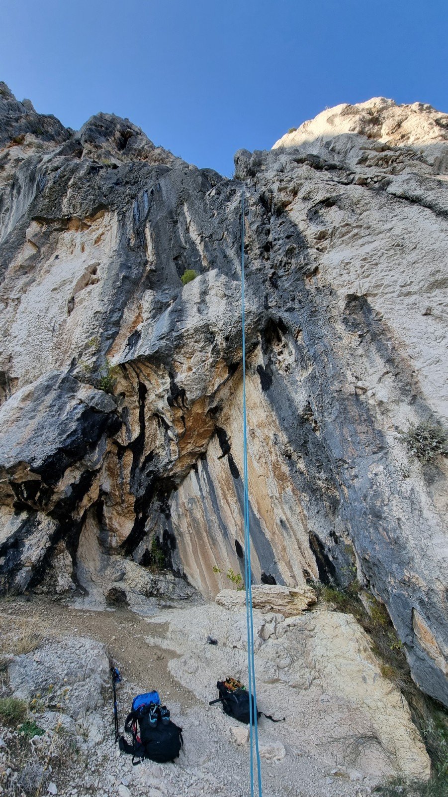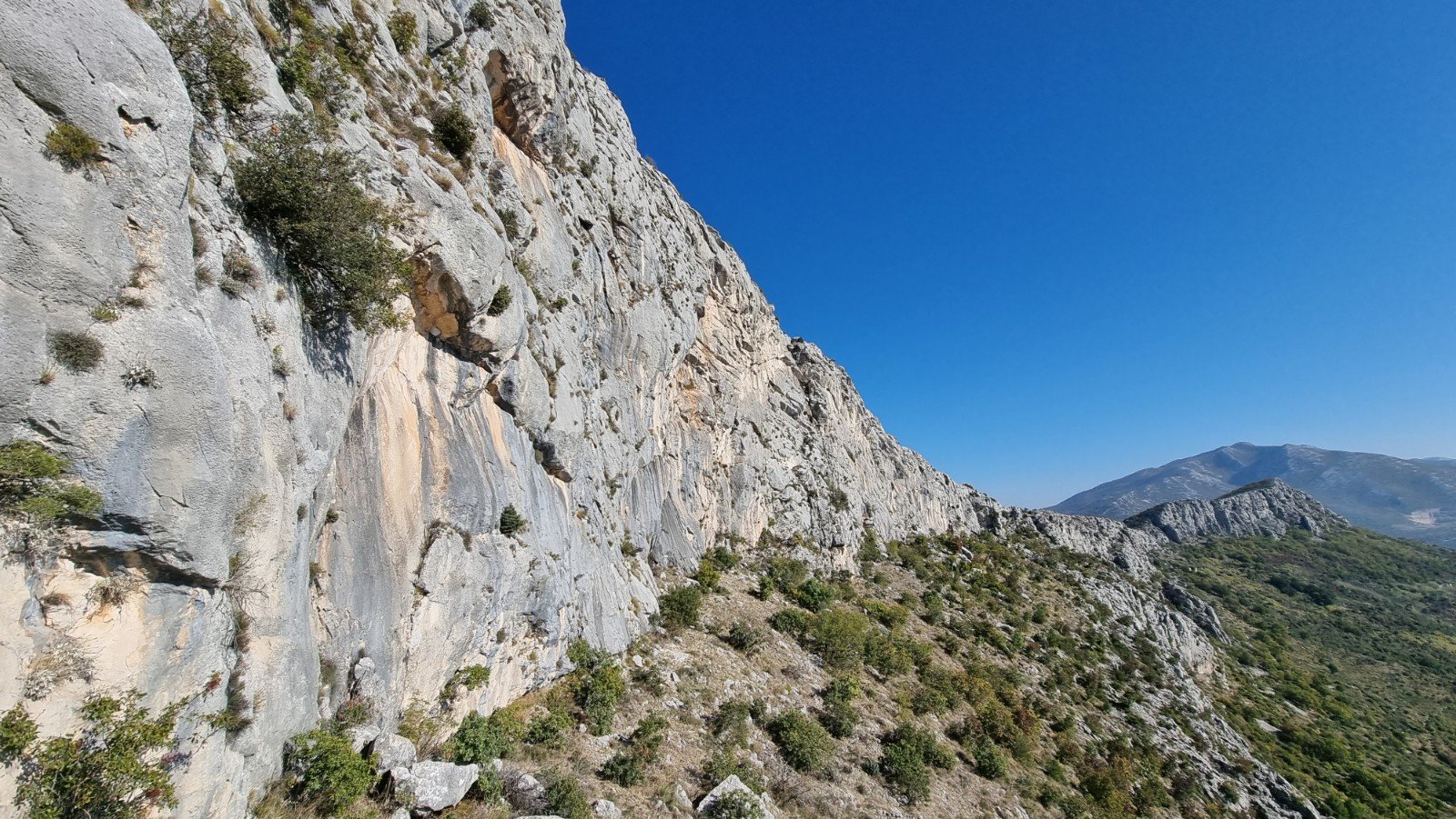 We were let down by otherwise pretty reliable approach description in the Boris Cujic guide. The map and GPS coordinates both reference completely the wrong parking (immediately beneath the crag but 150m too low!) We eventually figured out that we should park a couple of hairpins higher, next to a rather fancy elevated viewing platform here: 43.569438° N 16.489748° E (pretty much directly below Sector A)