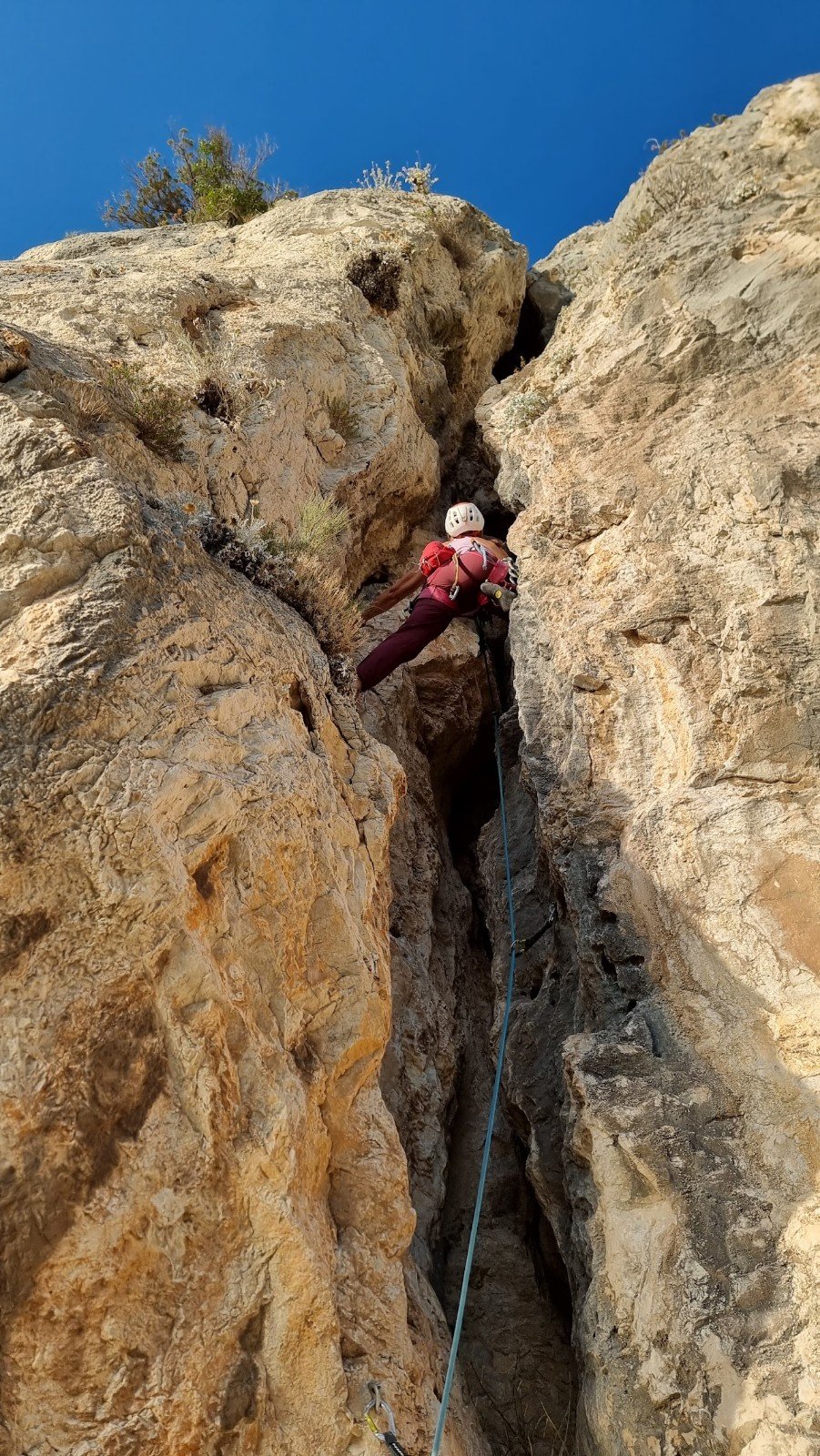 … and more short-lived effort on Carsko Vino, 7a, but Helen had much more success on (or in?) the adjacent speleological Ekspedicijski Kamin – quite an expedition!