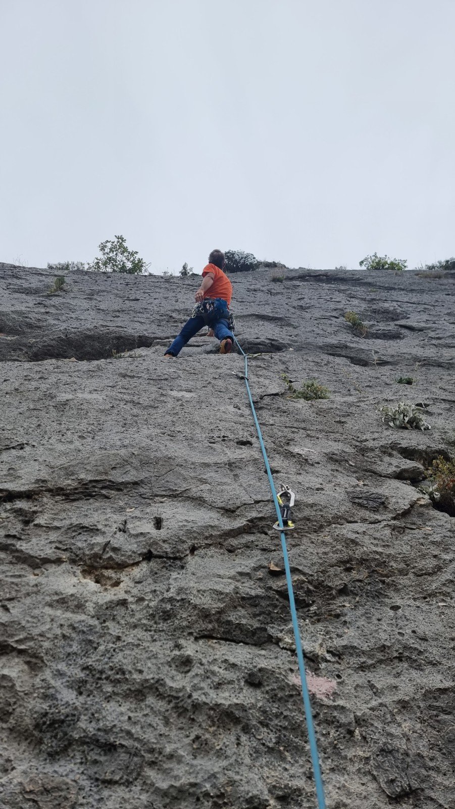 After a rainy rest day (much overdue but still resented – you can’t please a Goldilocks climber!) we were back on Osoje early again for the cool and the dry. We bumped into Luka and Schuman (sp?), two of the crag’s developers, putting the finishing touches to a couple of newly bolted routes. Great to see the amount of effort being put into evolving this brilliant new venue, and to be able to pass on our appreciation. The latest updates can be found on 27crags.com and if you stump up for the “premium” subscription, 50% of proceeds go directly to the crag equippers / topo authors.