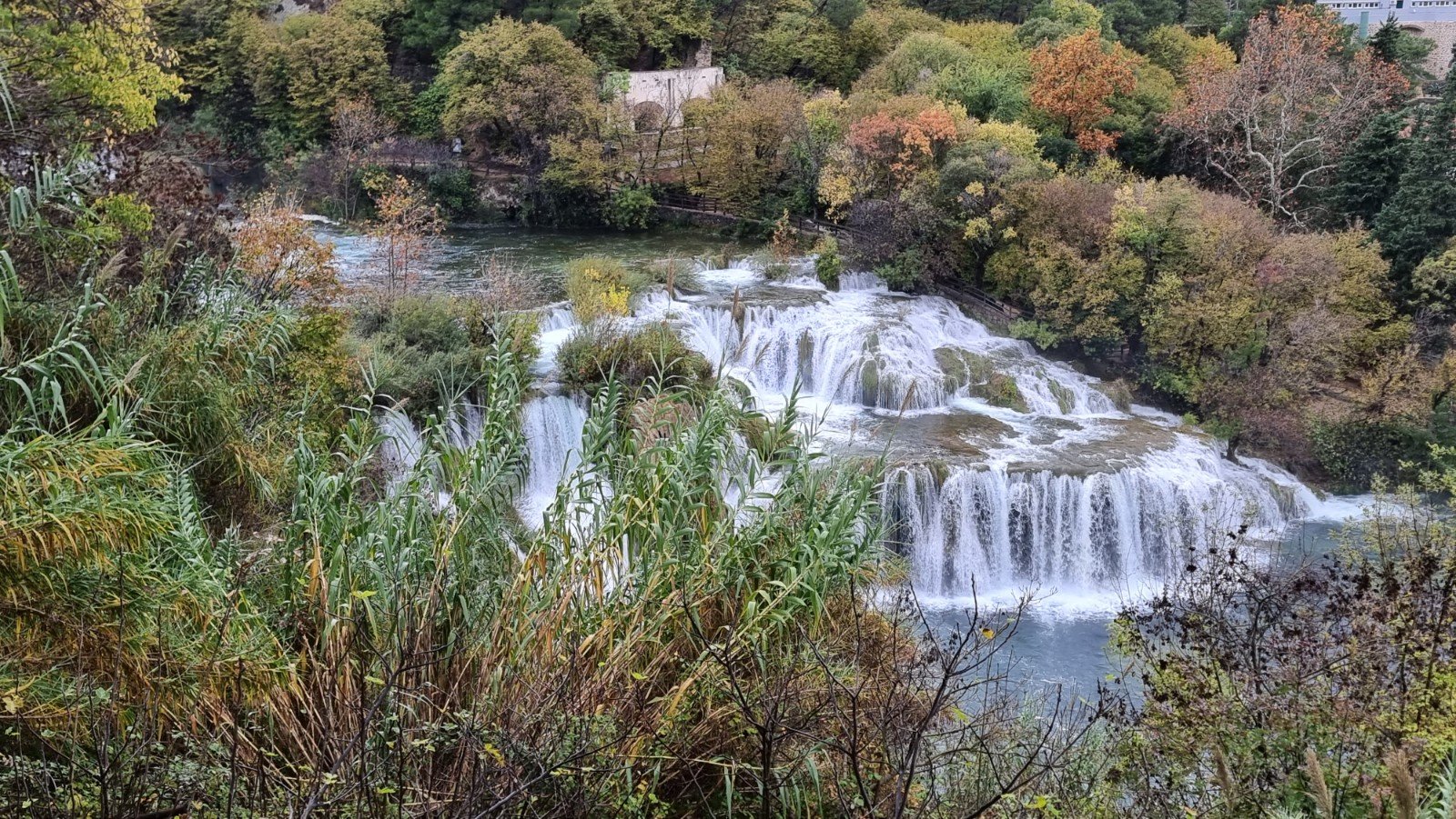 The spectacular Skradinski Buk waterfalls are a collection of 17 falls that tumble over travertine limestone barriers that are so characteristic of the geology hereabouts.