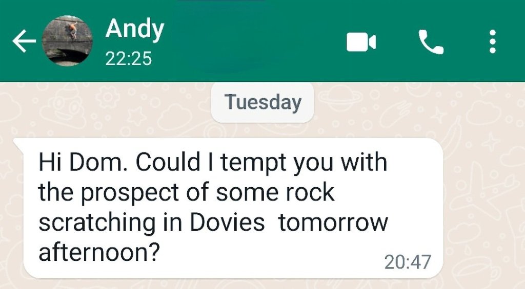 Also pleased to be around for spotting-duty (not that he needed it!) as Jake did a couple of the classic Plantation Highballs: DIY, F6b, and Daydreamer, E2 6b. As Jake said of the latter: “mad that this was done in 1960!”
