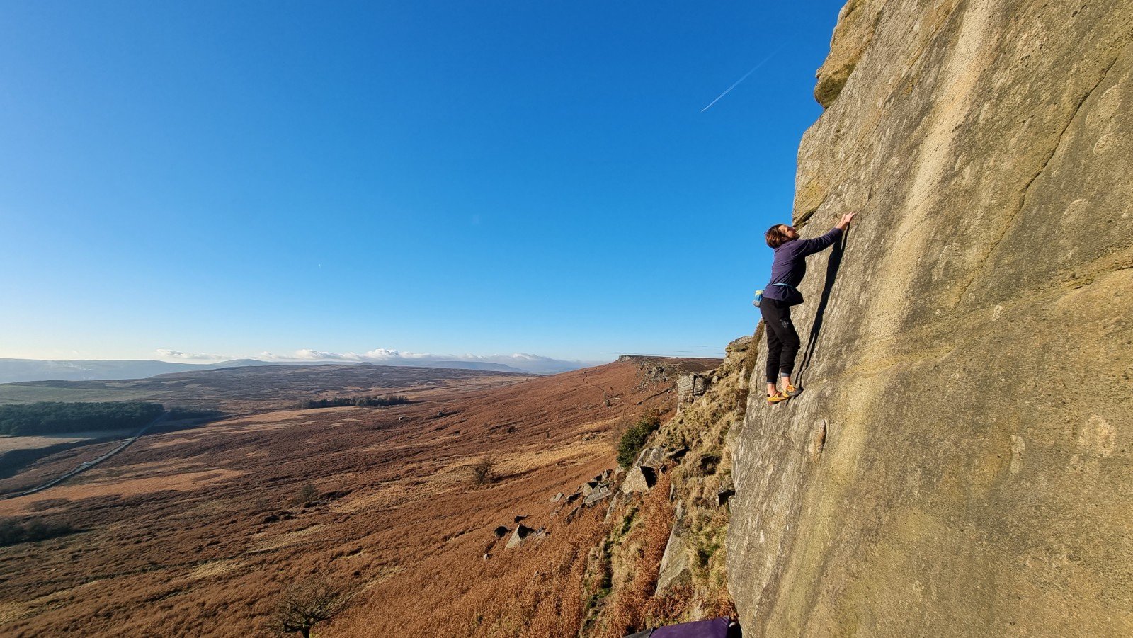 Beguiling unbroken sunshine and Jake’s enthusiasm had us packing mats, flasks and beannies and setting out for Stanage before I’d fully researched the forecast. The car thermometer showed 0C as we pulled up in the High Neb parking, calibrated as we crunched through iced-up puddles.