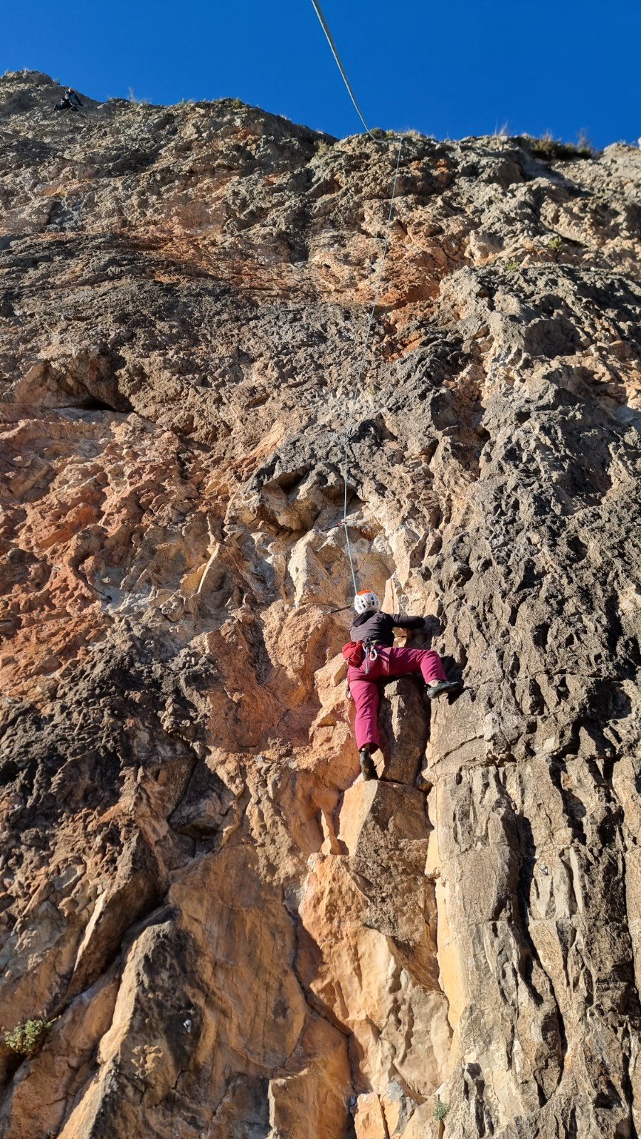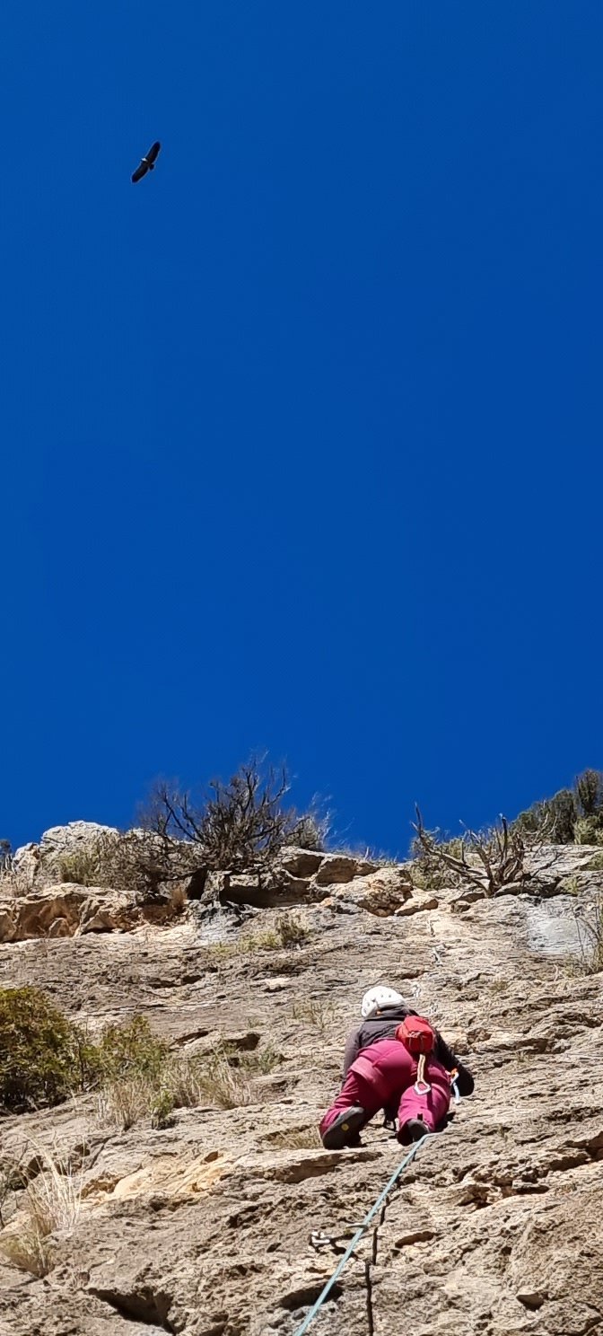 Finally, breaking new ground, we visited Teresa, a small but spectacular crag on the side of a winding canyon. We’d reccied on our first day but it’s westerly aspect was catching the wind not yet in the sun (shady until noon).