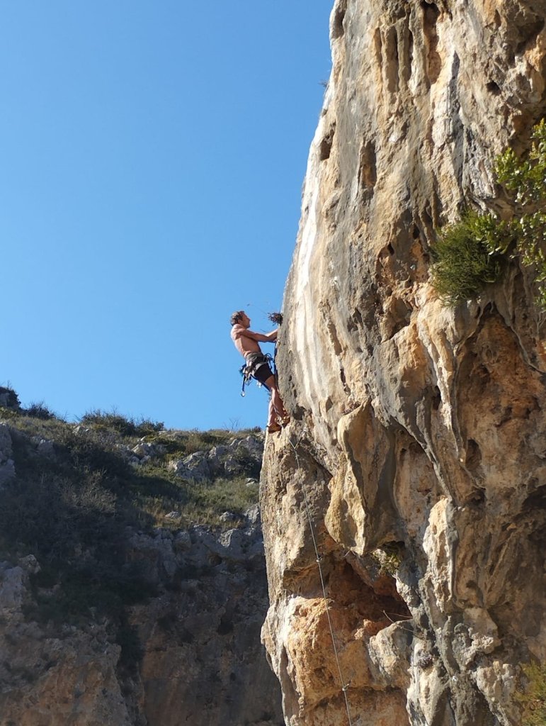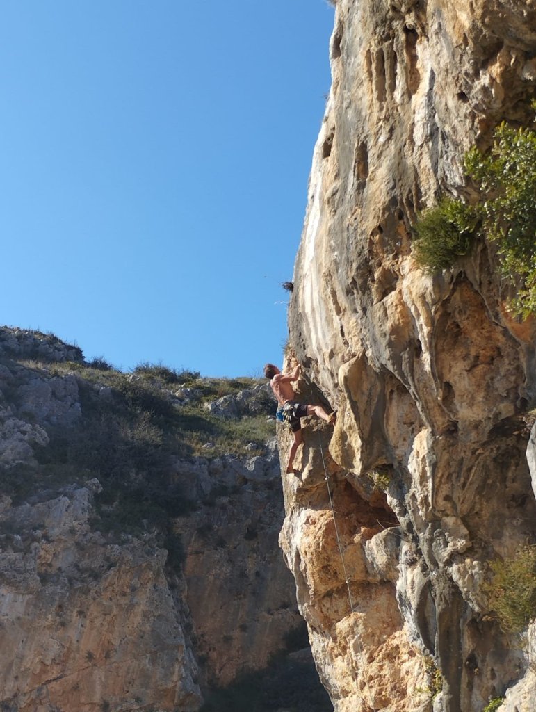 We saved the most convenient sector for last – all the ingredients of a future classic (easy approach, lots of sun and a good range of 5s and 6s) but less remote feeling (you can actually see a road, though you’d only count a handful of vehicles in an hour). Park at the end of a small track, just south of the village 38.967325° N 00.343687° W (another nice sign)
