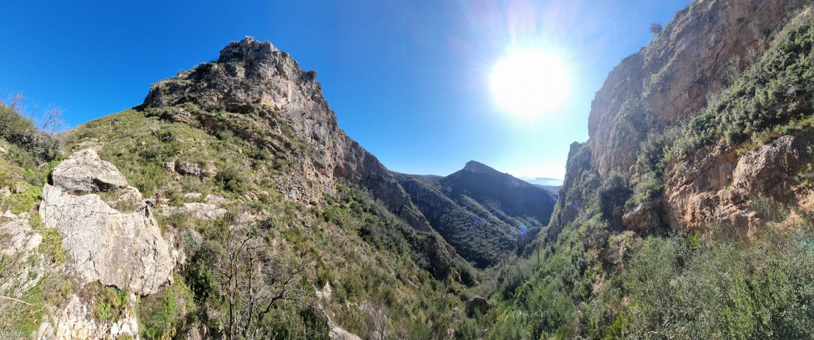 Arriving in town from the south (from Llutxent) it’s clear that there’s a lot of rock about, and you drive past the fairly obvious sector Moskow with the skyline dominated by impressive gorge (which is home to four of the sectors, of which only Runal is visible in the shot below).