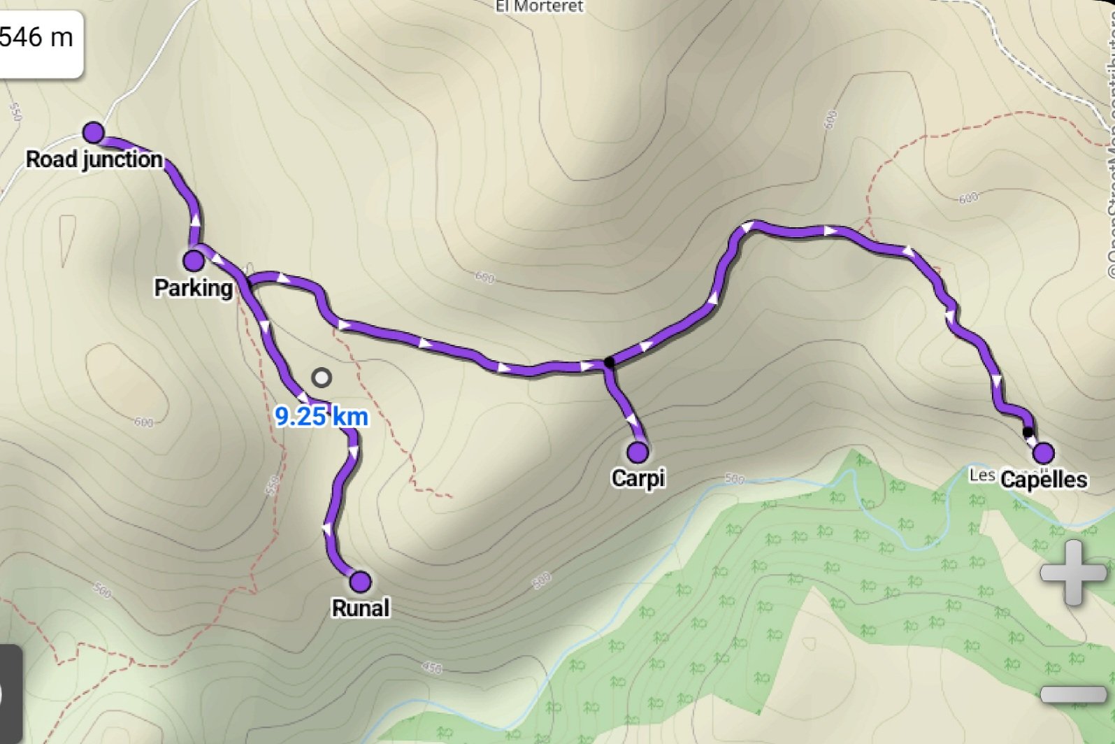 Head left for Carpi (and Les Capelles) along a waymarked path, and marvel at the effort that someone has put in to cut a path through the gorse. 10mins or so along here and El Carpi is signposted steeply down to the right.