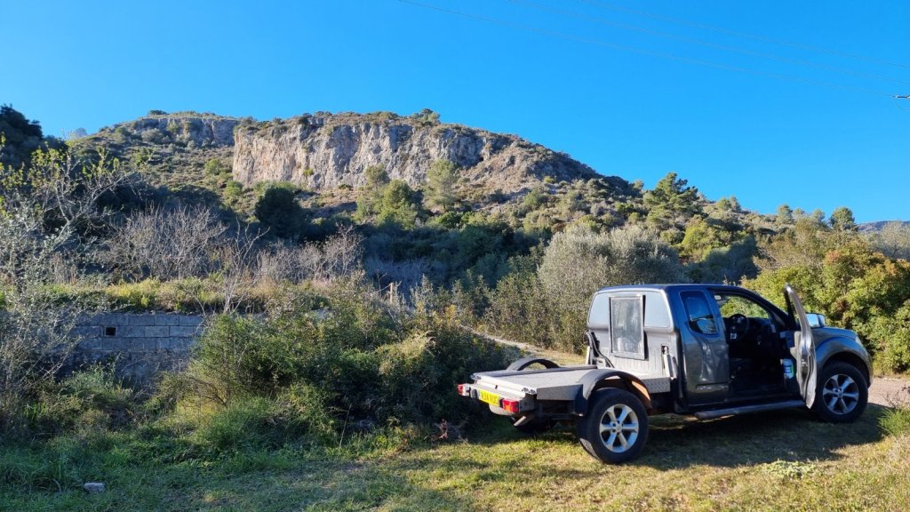 You approach El Carpi and the three other upper sectors from the same parking area about 4km along concrete / dirt roads north of the village (easily navigable in a regular car) to a signpost and possible parking here: 38.995217° N 00.331187° W If travelling from Gandía it’s actually shorter to drive over the hills from Barx (assuming you’ve already bought your topo from the bar).