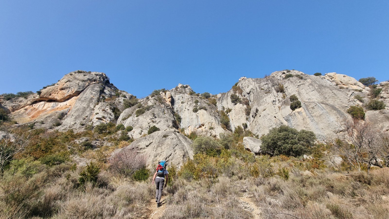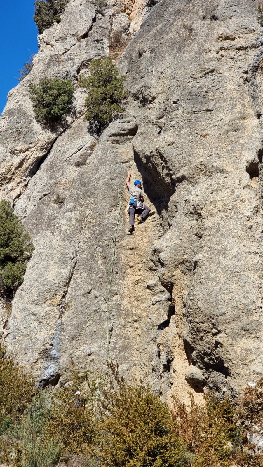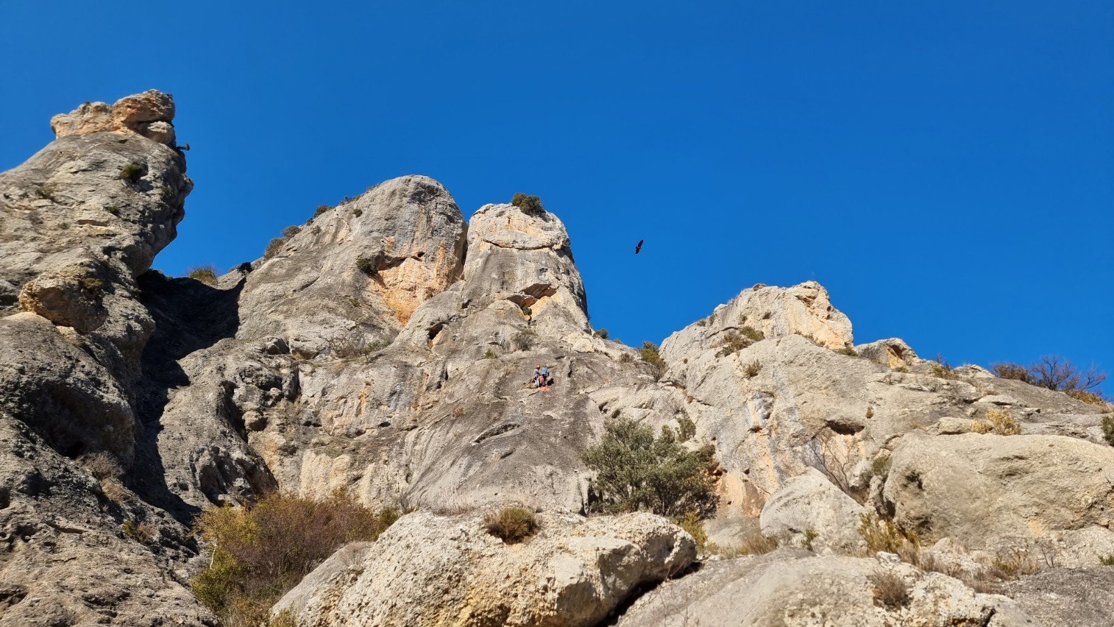 One feature I’d been hoping to come back to climb was the stunning rock arch of Puente de los Lobos. You can see the giant’s shoulder in the middle of the shot below, with the natural archway beneath.