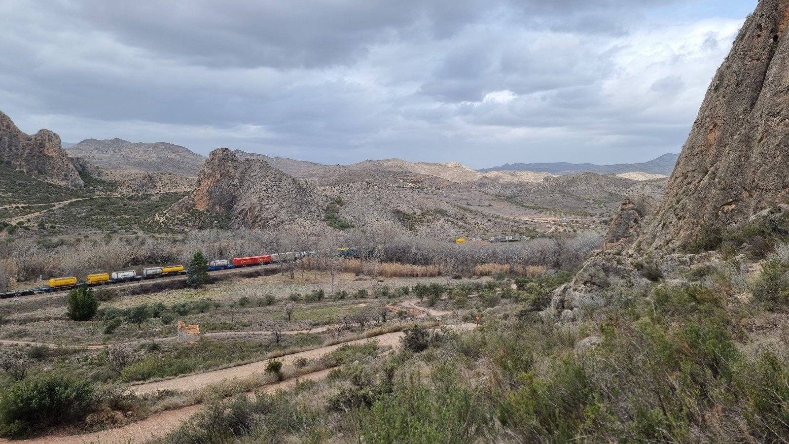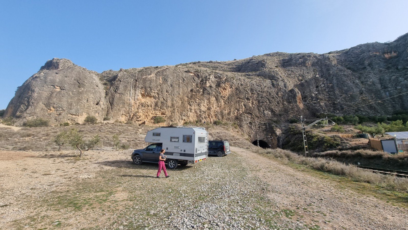The only drawback is that it’s a few hundred metres away from a railway track. The occasional train, every hour or so, would be fairly tolerable, but the sound of the warning siren at the level crossing is truly piercing. Fab spot otherwise… You can park even closer to Sector Pared del Tunel, and you are 2mins from the climbing.