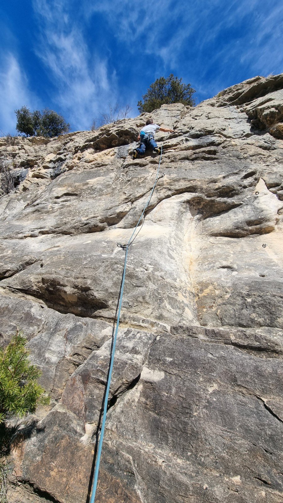 We scanned the QR code (all mod cons) for Les Esposes, which looked to be a handy, easy-access, sunny crag to bag a YECTOYD. It delivered on all the above, including the requisite sunshine.