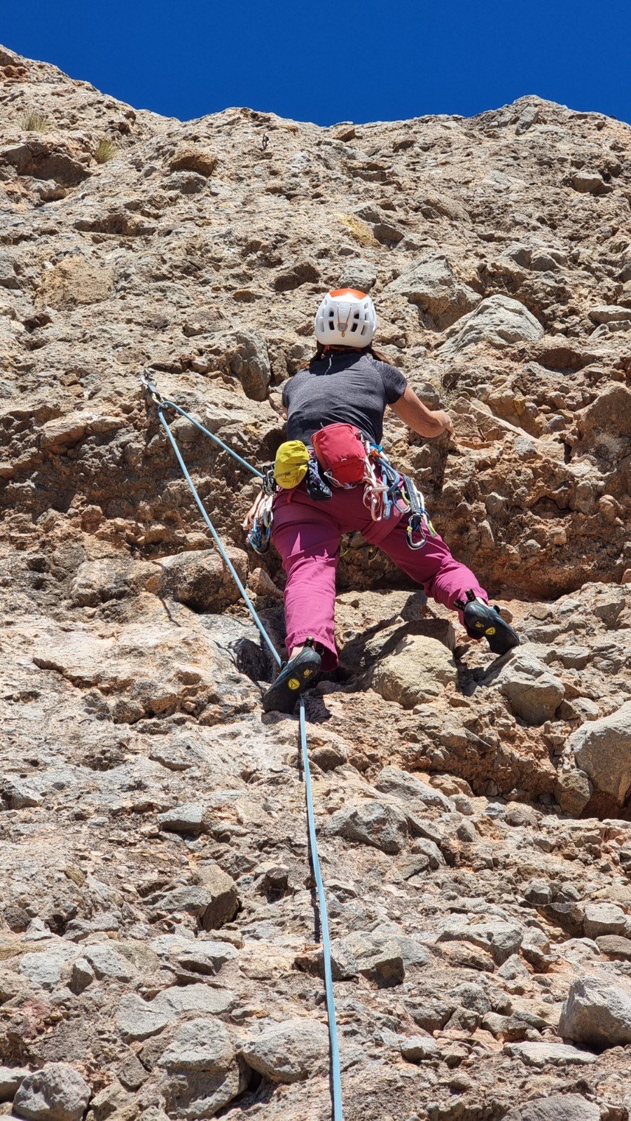 We rapped the route (fine with a single 80m), avoiding the queue for the shared abseil off the back of the Mallo, and being VERY careful to avoid any rockfall on any following team (there wasn’t).