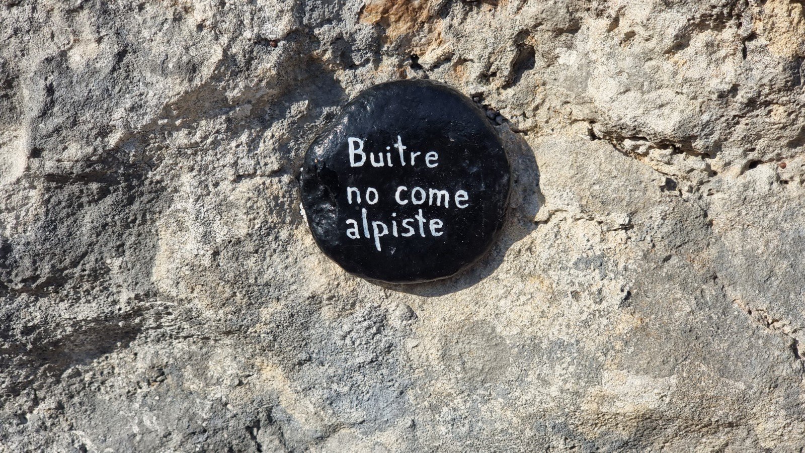To add to the charm and convenience there are elegantly painted black route markers on most of the routes. We were reassured to read that “Vultures don’t eat Alpinists”…