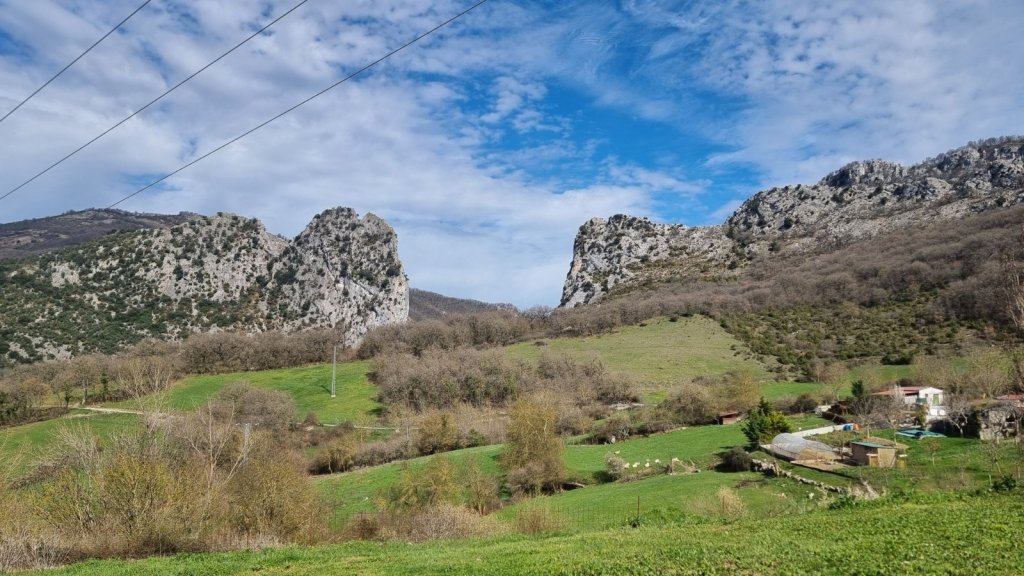 Dos Hermanas, or The Two Sisters, are a pair of impressive limestone towers guarding a pass near the town of Irurtzun. Somewhat incongruously they’ve now squeezed the A15 autopista between Pamplona and San Sebastian through the gap, but it remains an impressive piece of geology.