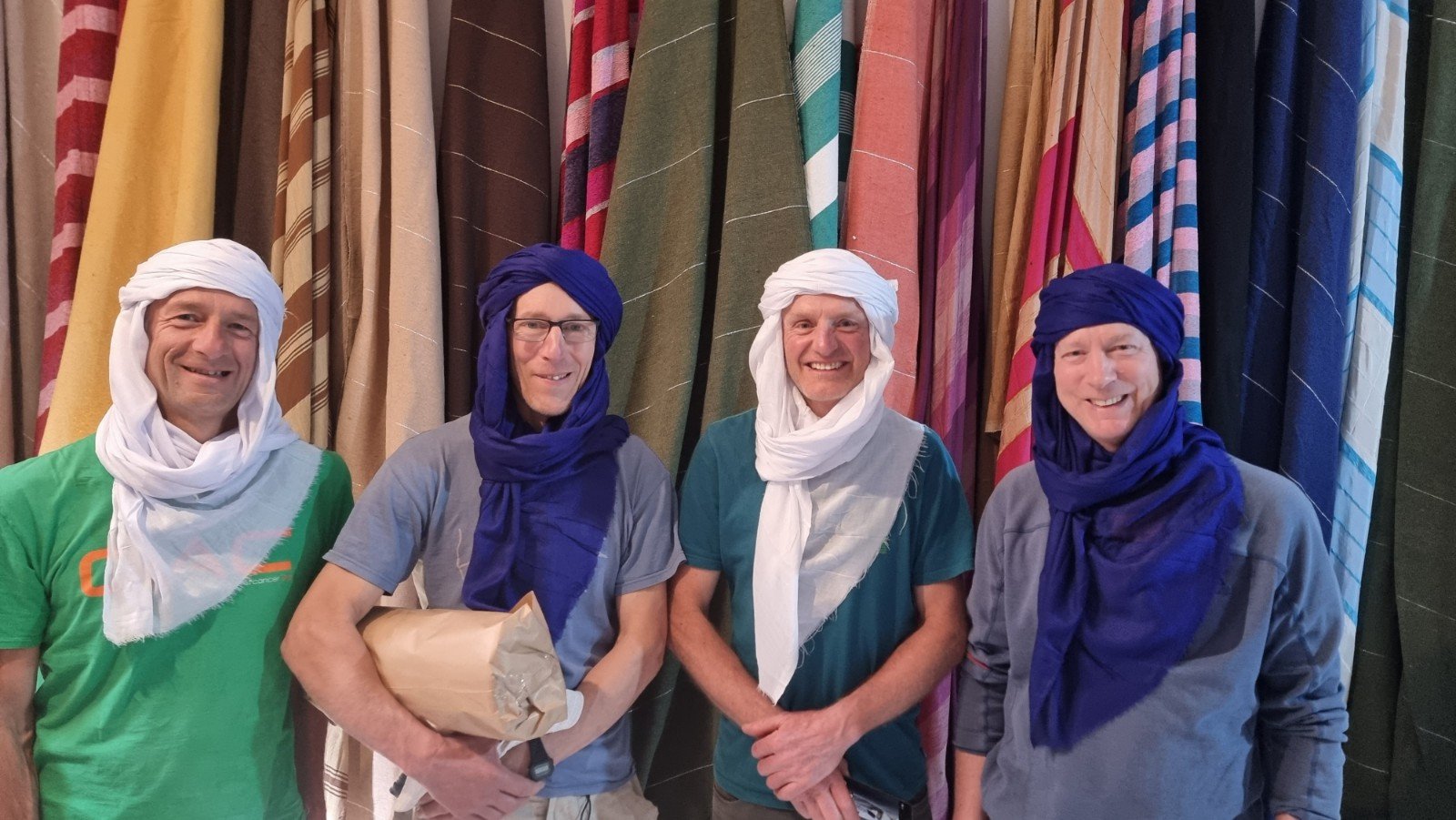 … and we were even dressed in turbans for a memorable team photo. A great memento of our flying visit to Tafraout – we’re sure to return (perhaps in the cooler months to enjoy the sunny aspect of the majority of the crags).