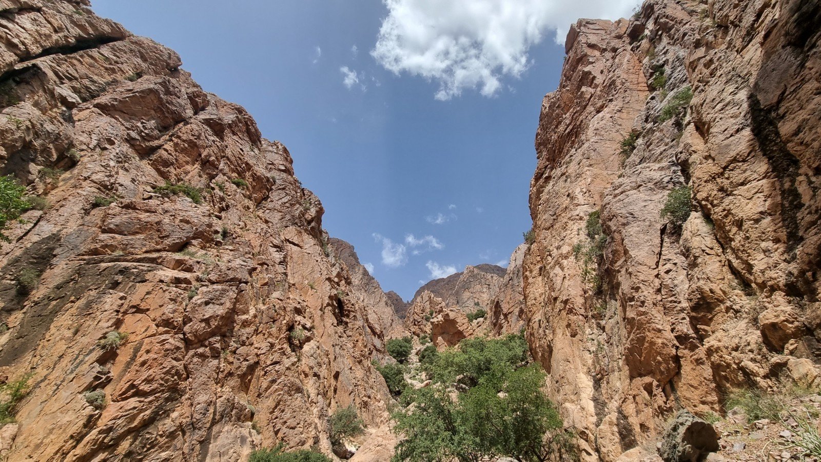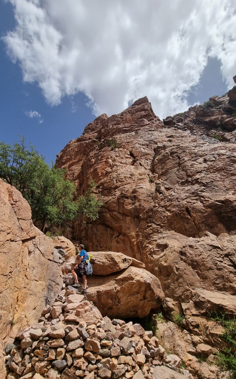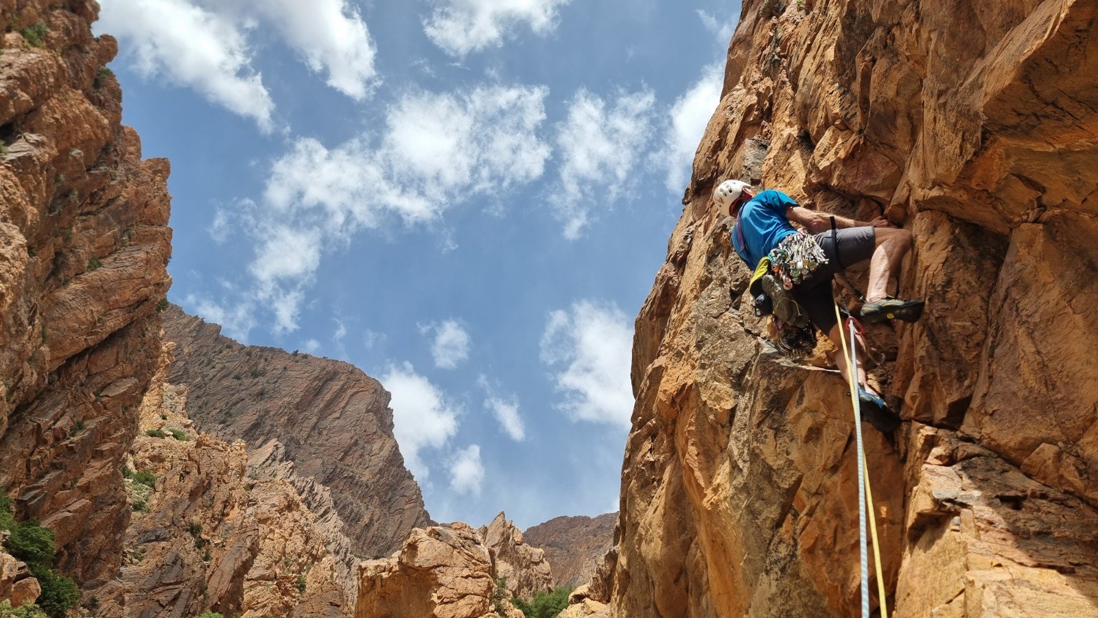 Not much shade to be found there, but the spectacular Tizgut Gorge cuts into the main line of cliffs, offering east and west walls and the opportunity to chase the shade (or sun) as conditions dictate.