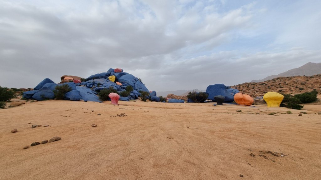 We were down in time for a side trip south of Tafraout to check out the famous “Painted Stones” – what had started out as an interesting art installation has now got somewhat out of hand!