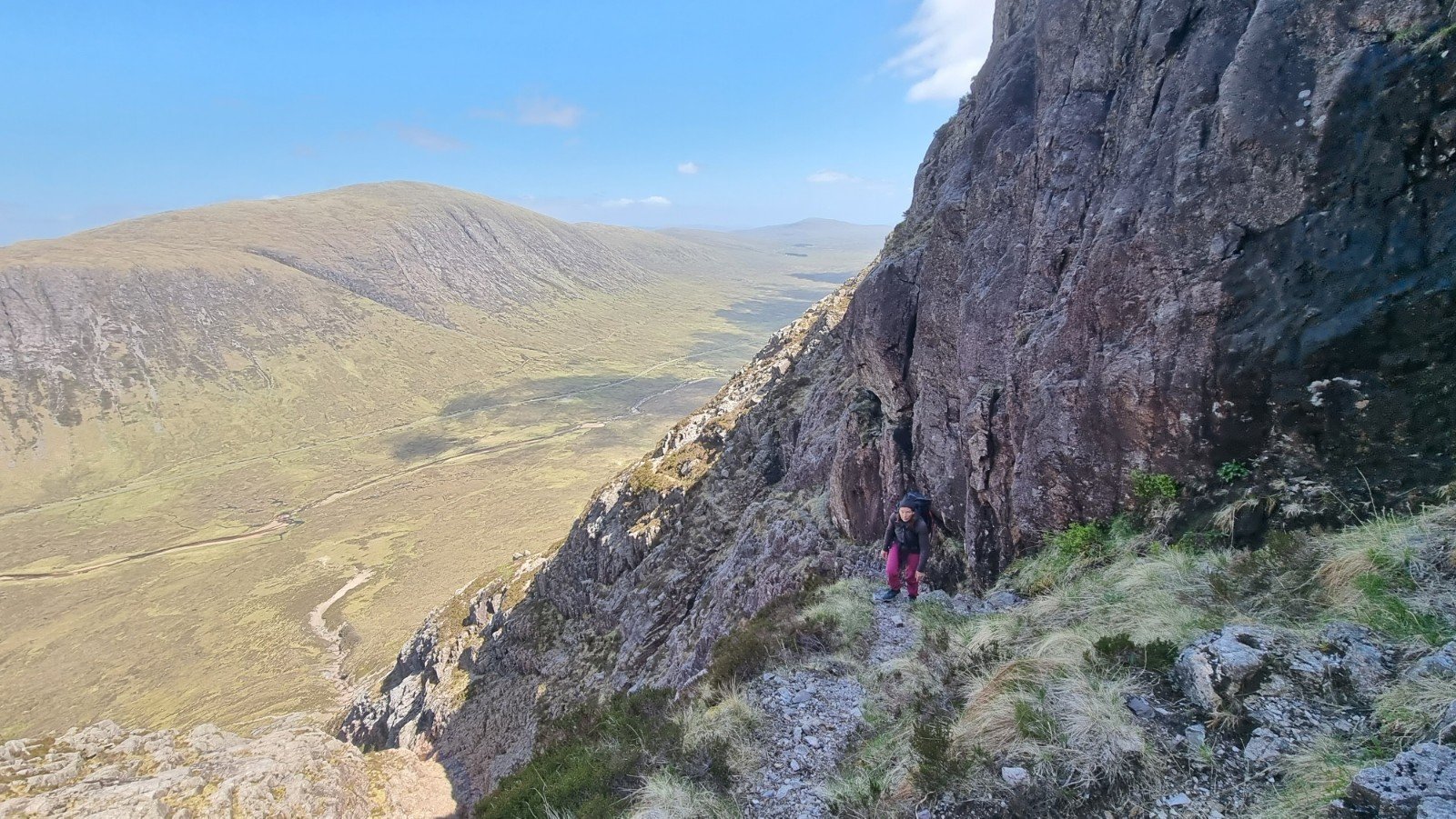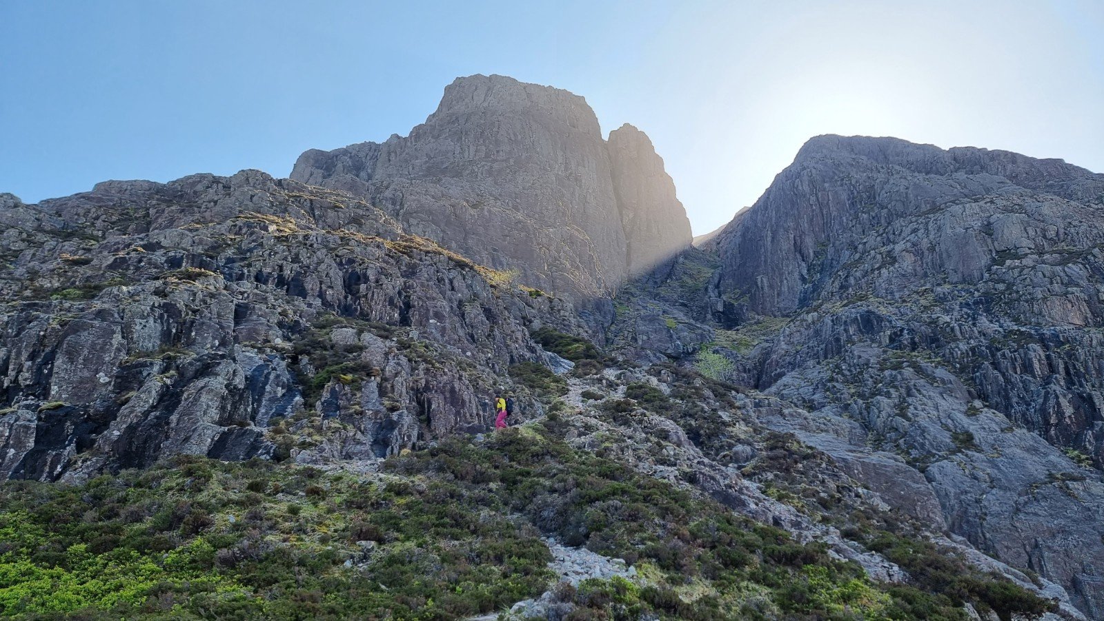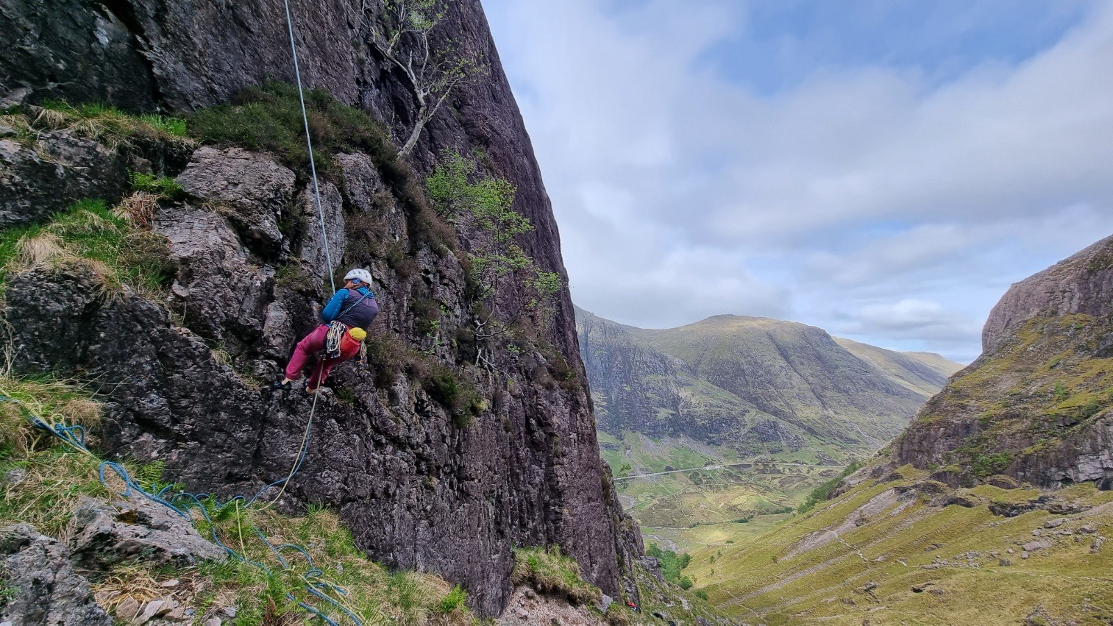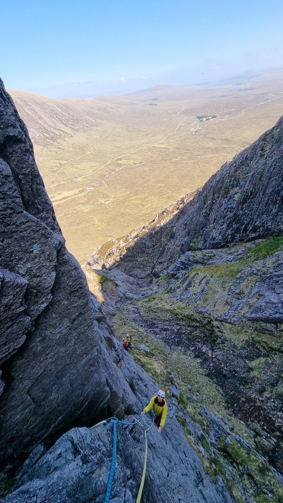 Thursday was the kind of day usually only found in the Visit Scotland commercials – wall-to-wall sunshine, though not super-toasty. Perfect for a visit to Am Buchaille’s Great Gully Buttress. Set opposite Slime Wall, its easterly aspect means the early bird catches some sunshine. We’d just missed out but at least the rock had been dried and warmed for us.