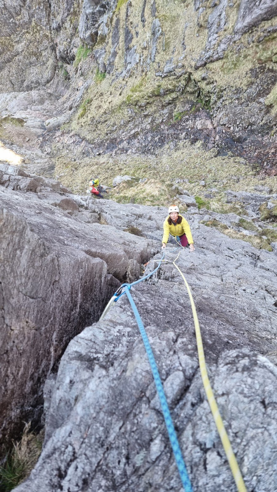 We did June crack, a 3-pitch VS 5a which is the classic and most obvious crack line on the wall. It perhaps harkens back to the days when VS was the top of the grading tree in Scotland, as it is certainly no pushover. Fab climbing though.