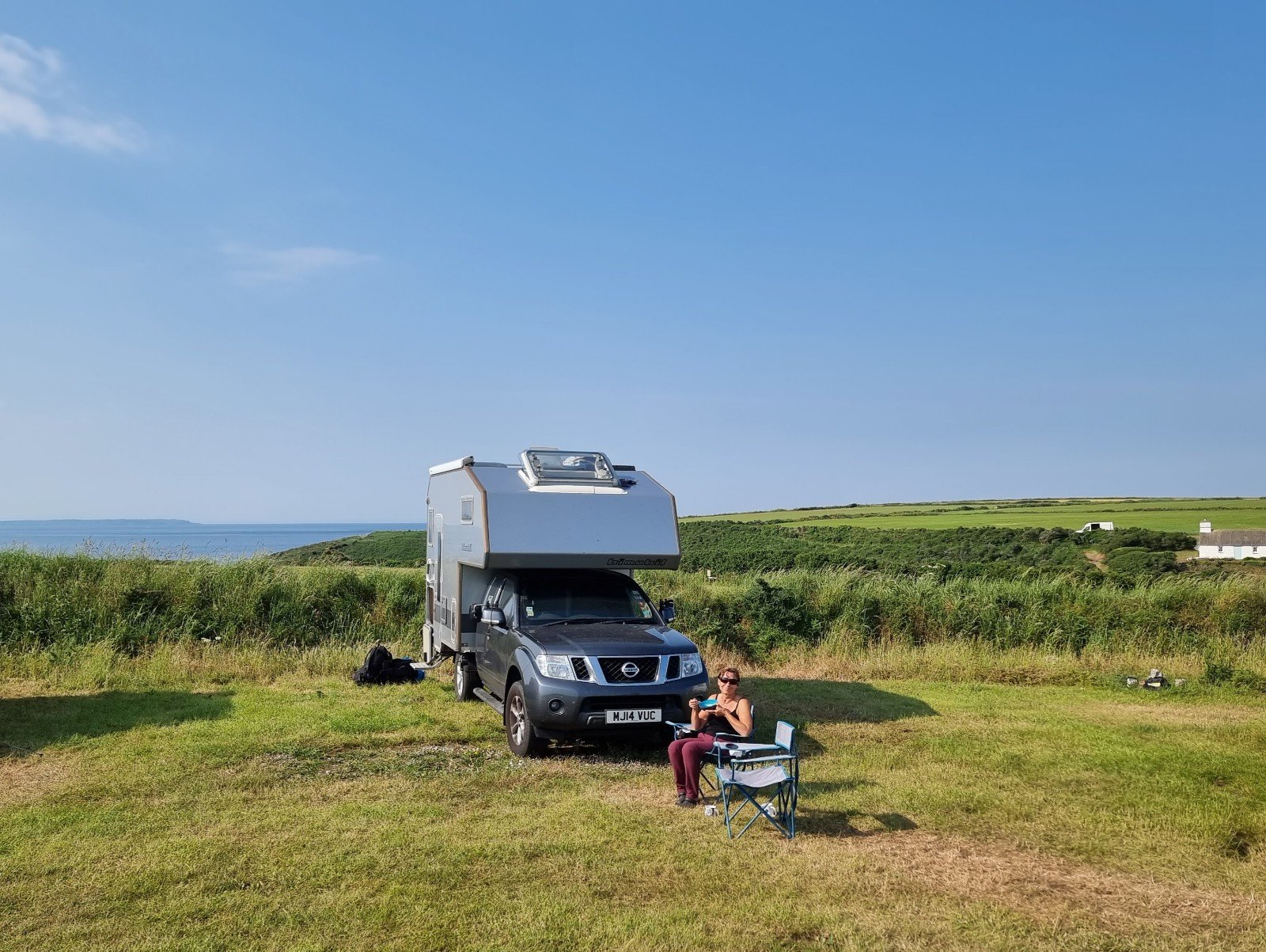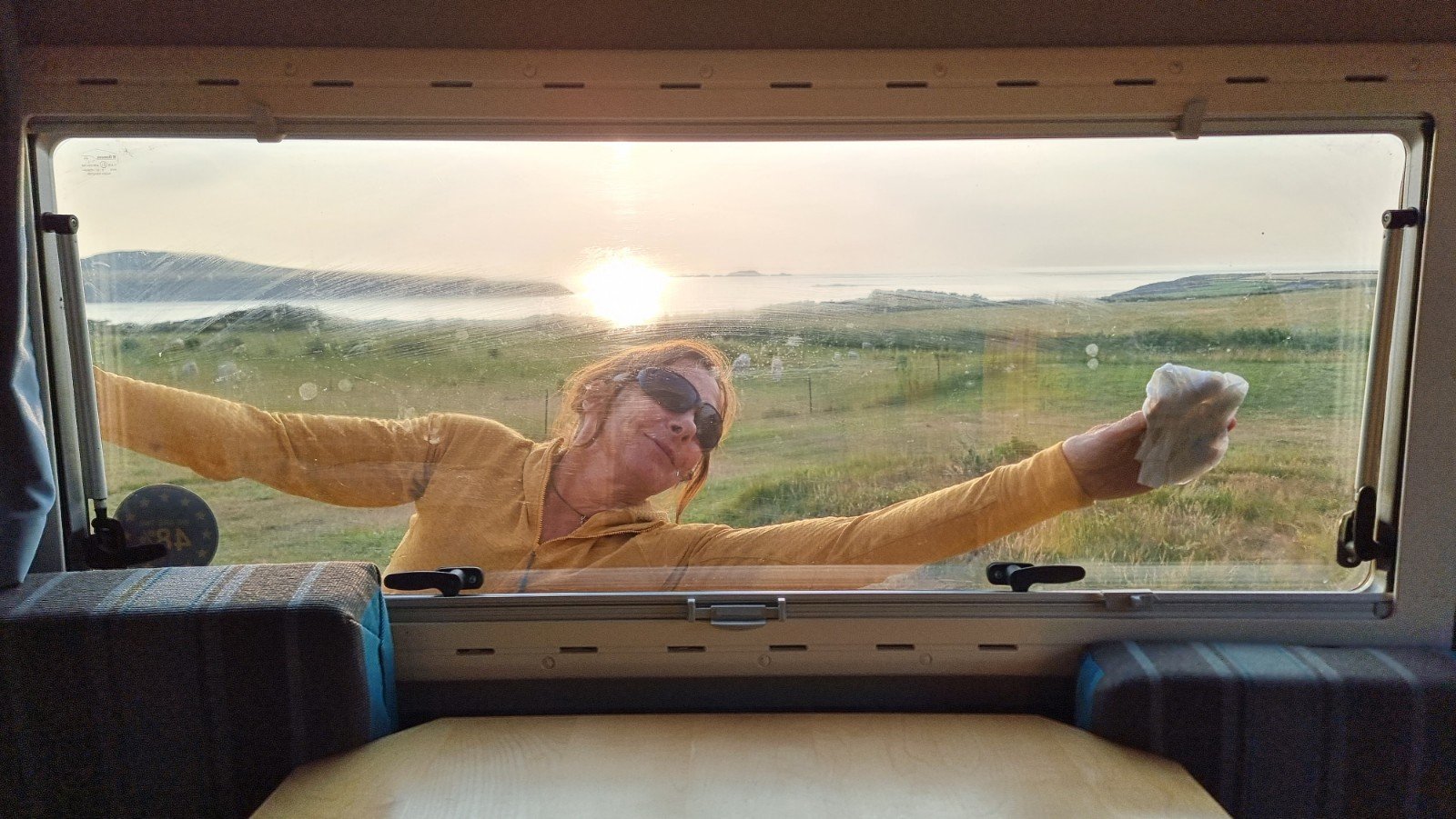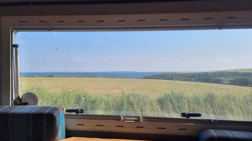 … before the short couple of miles to one of our favourite campsites at Treginnis Uchaf. Fab views over Ramsey Island, worthy of a clean back window!